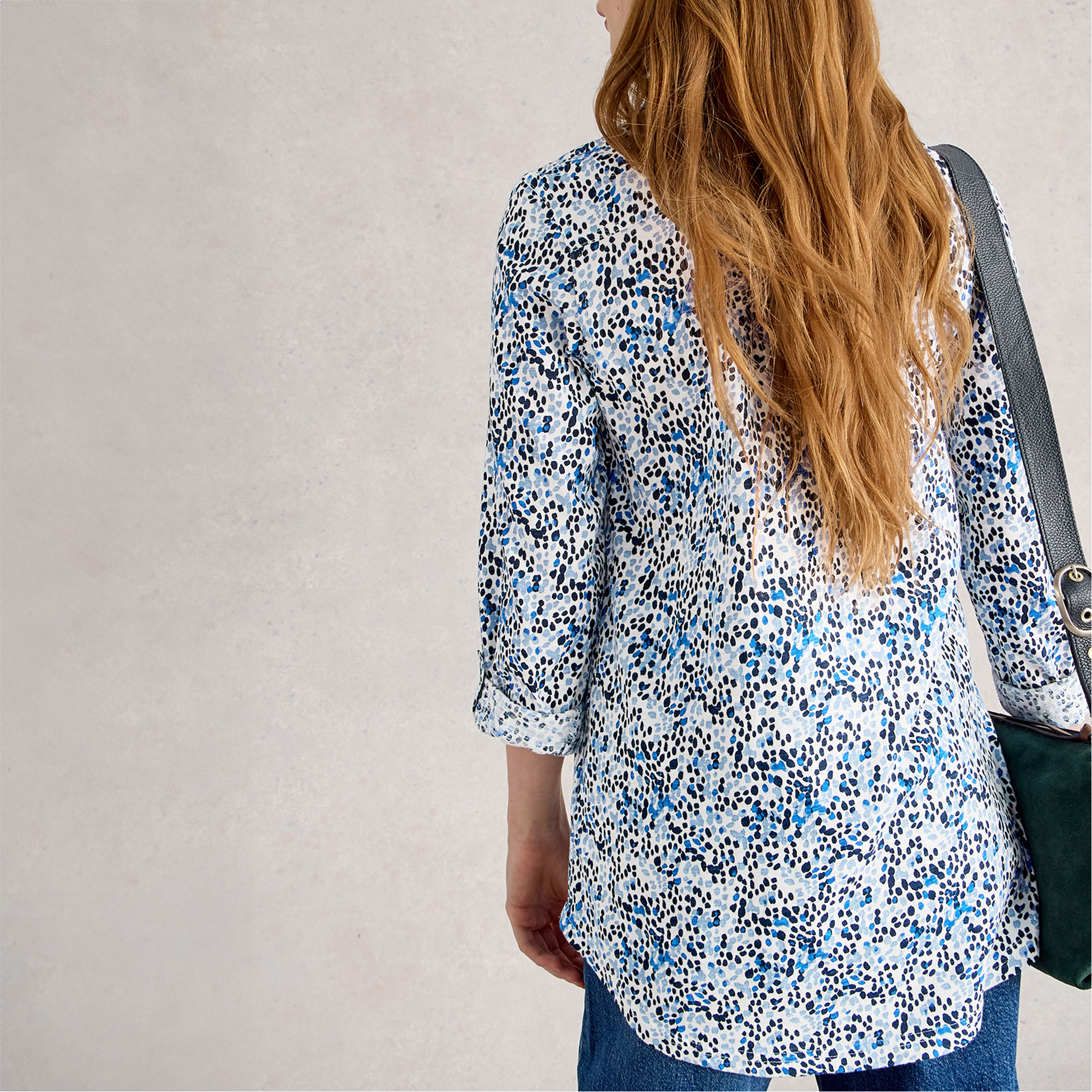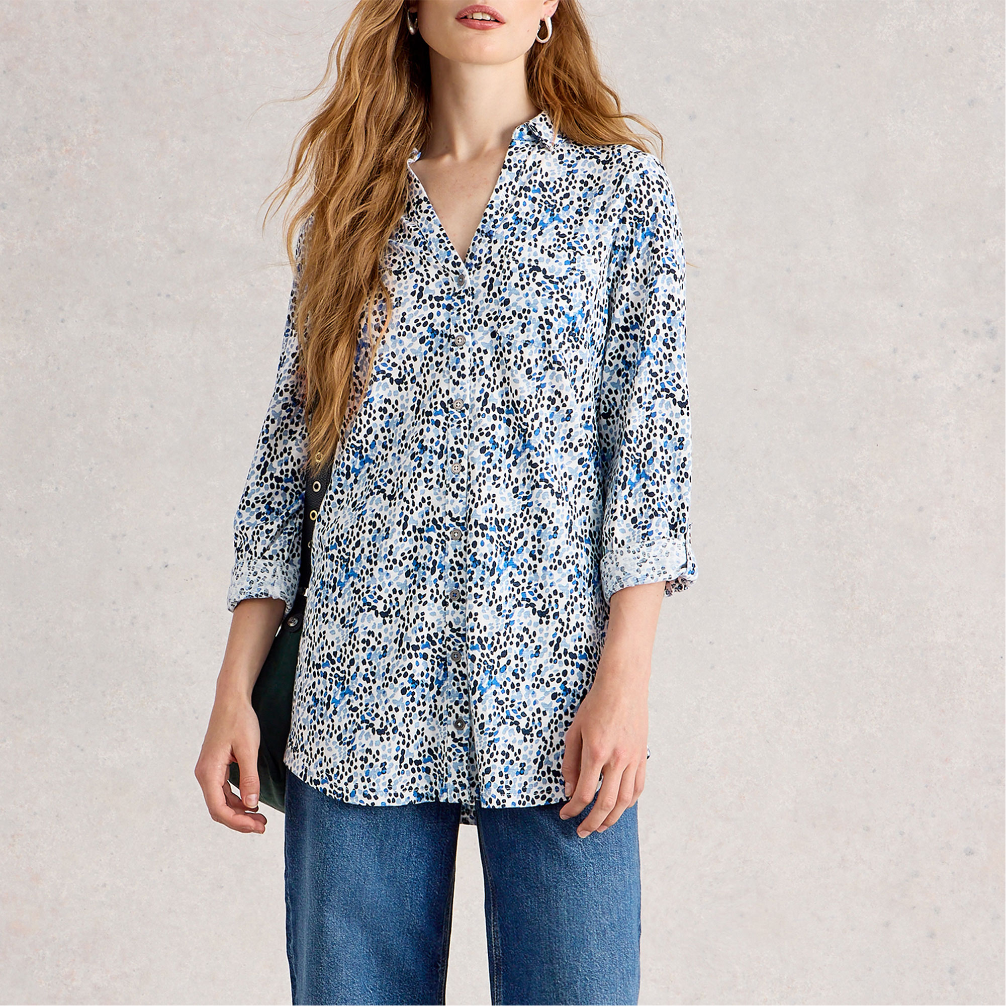 • Button fastenings, longline silhouette, printed, front pocket, long sleeves, tunic style
