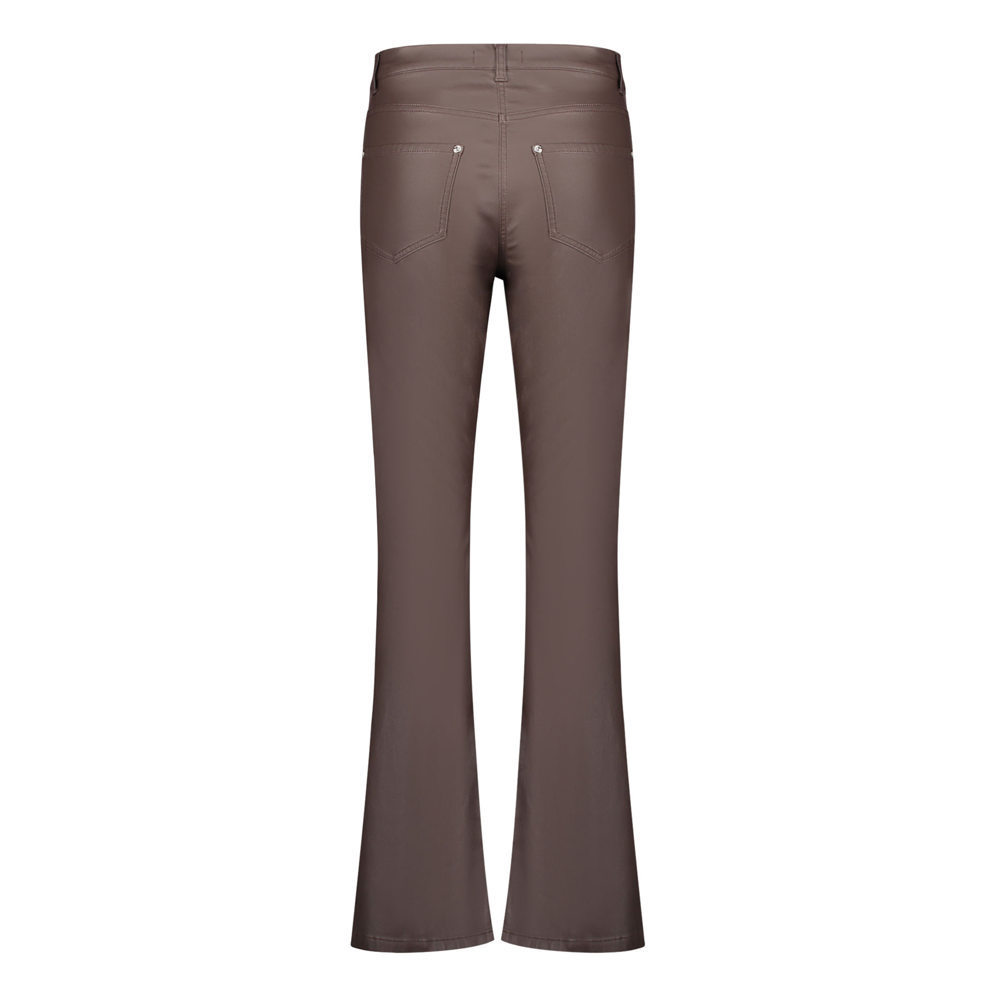 - Plain finish, bootcut style, flared leg, five-pocket style, belt loops, button and fly fastening