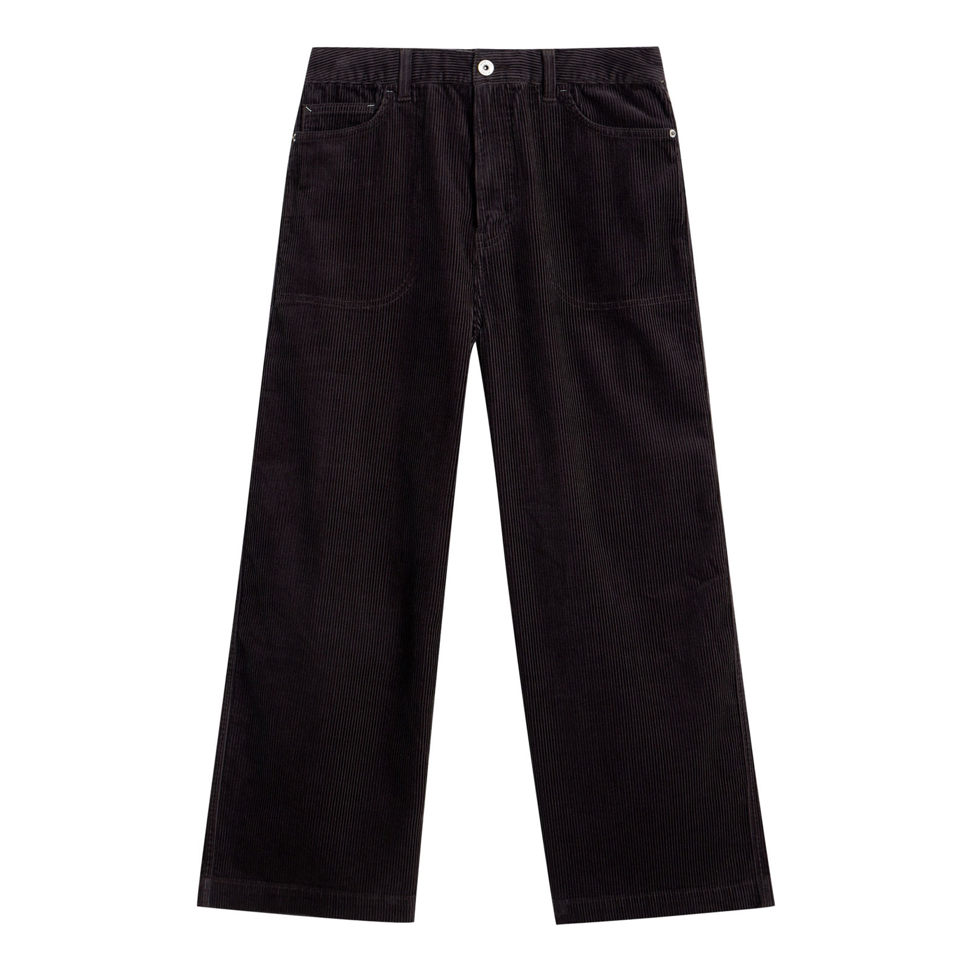 - Textured finish, corduroy fabric, wide-leg silhouette