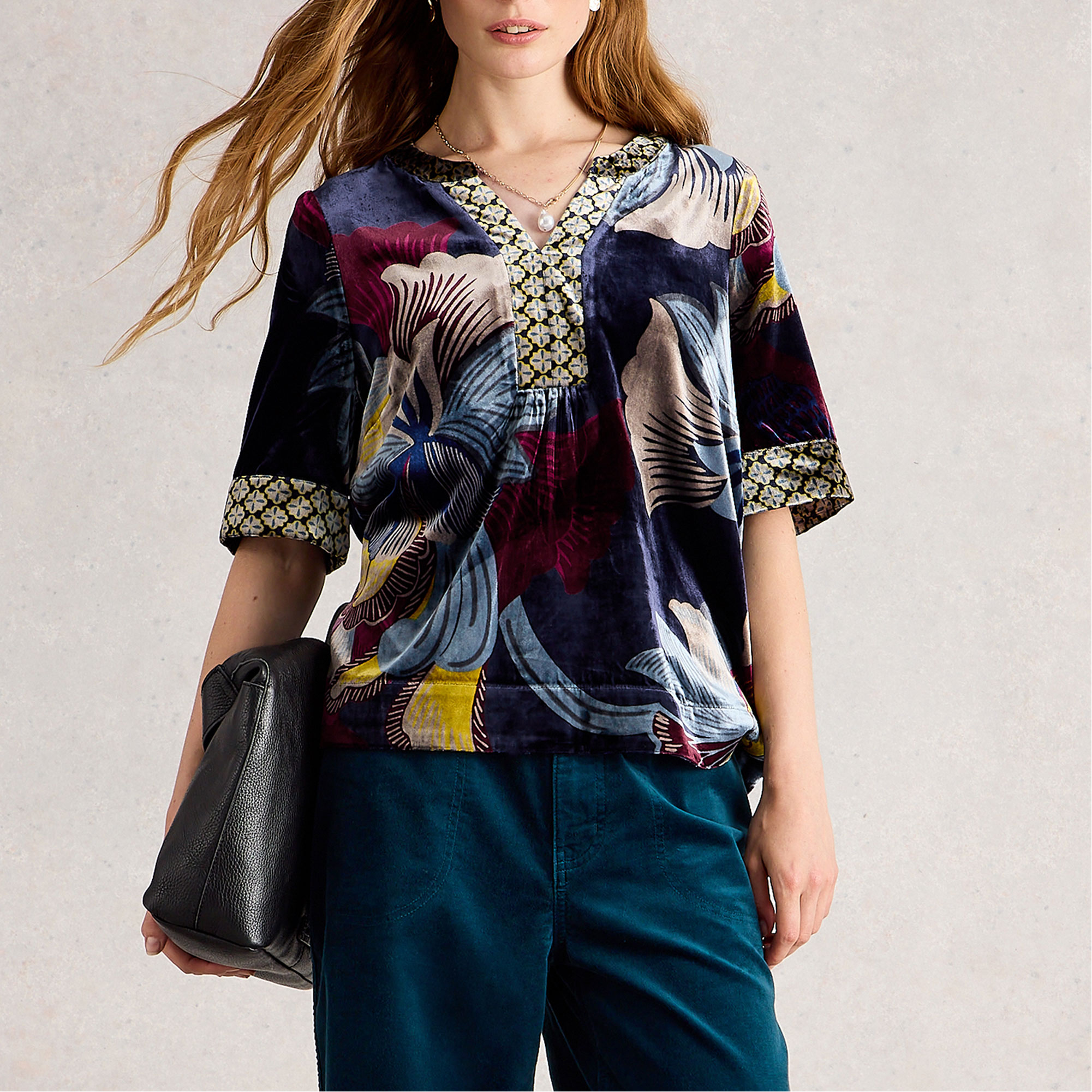WHITE STUFF Ash Floral Velvet Top