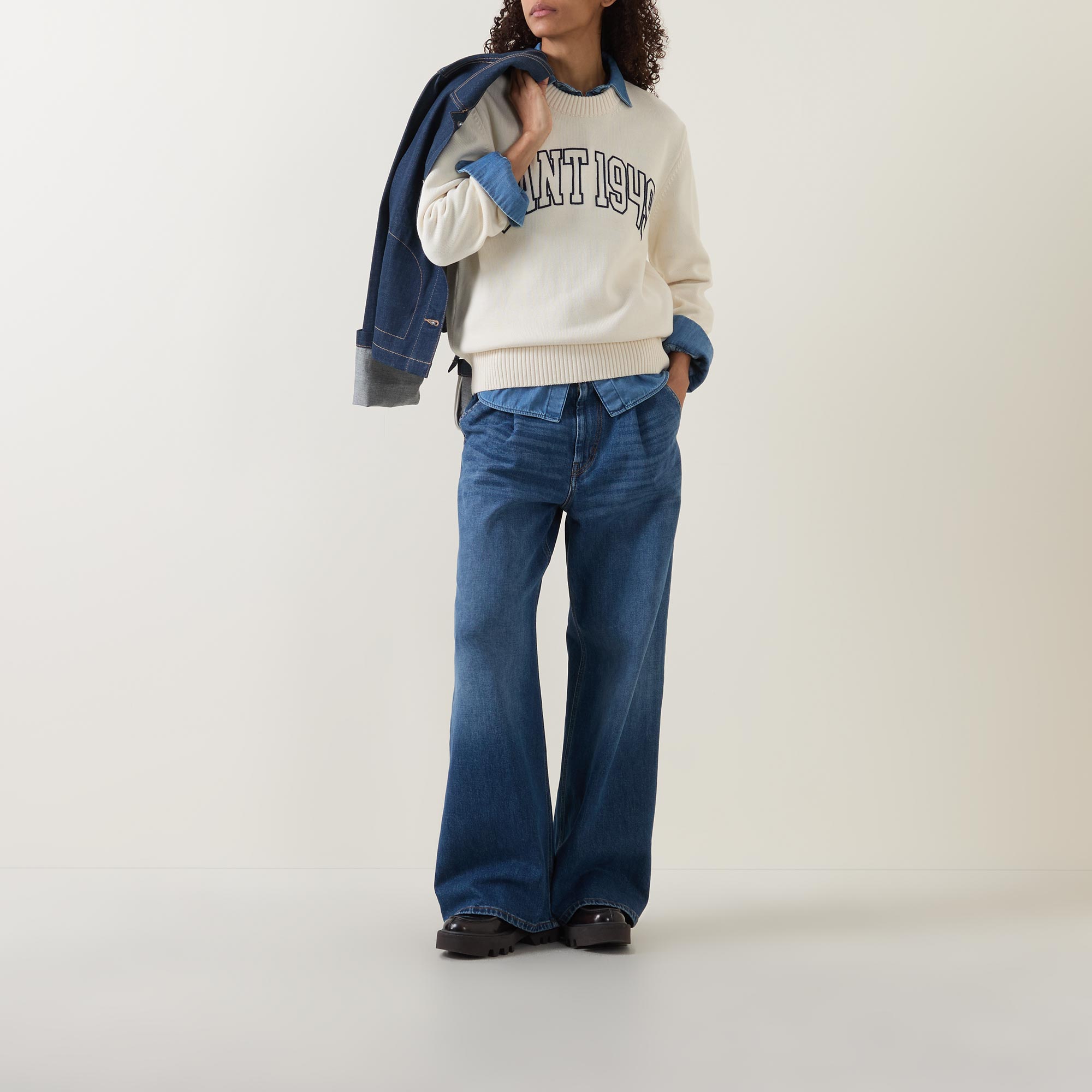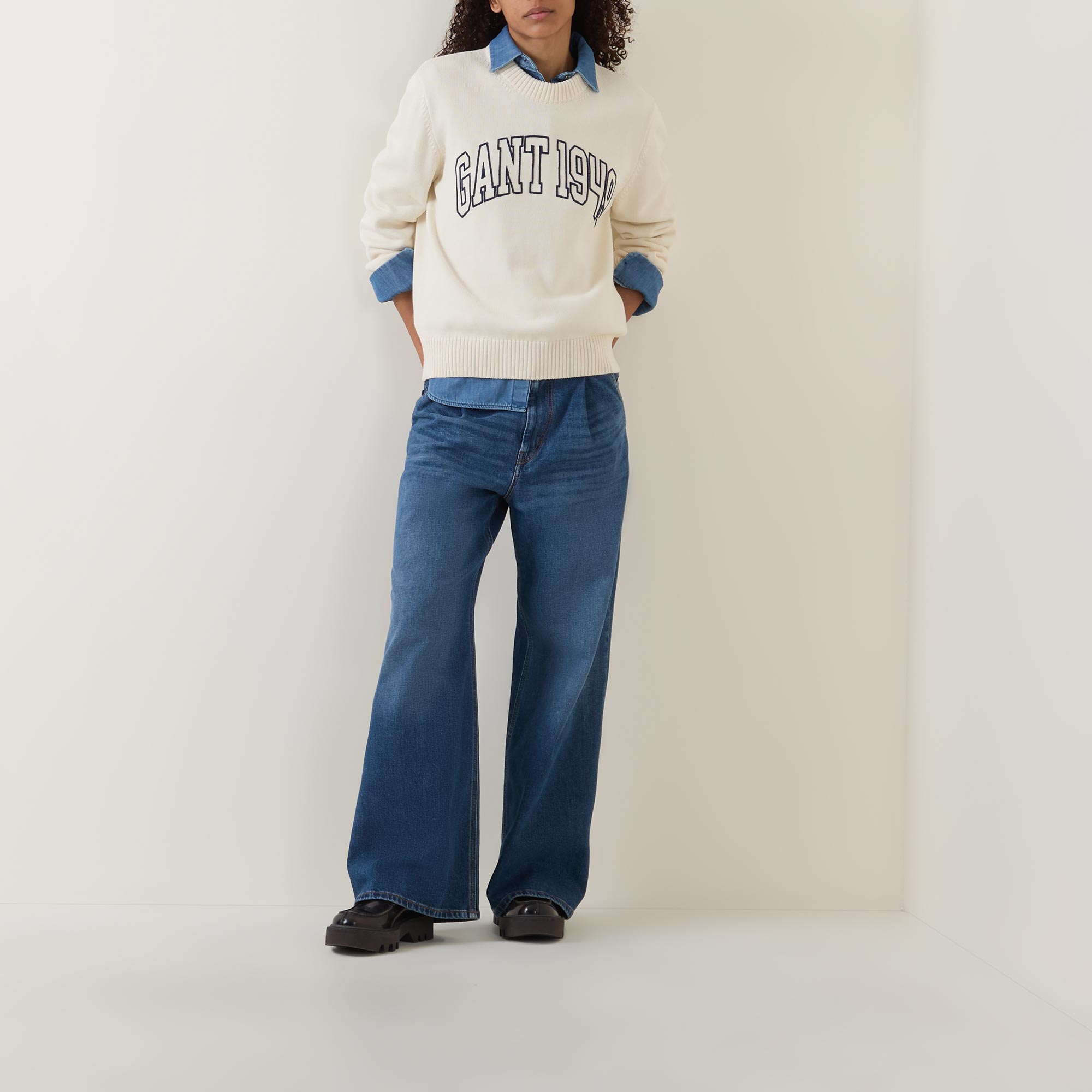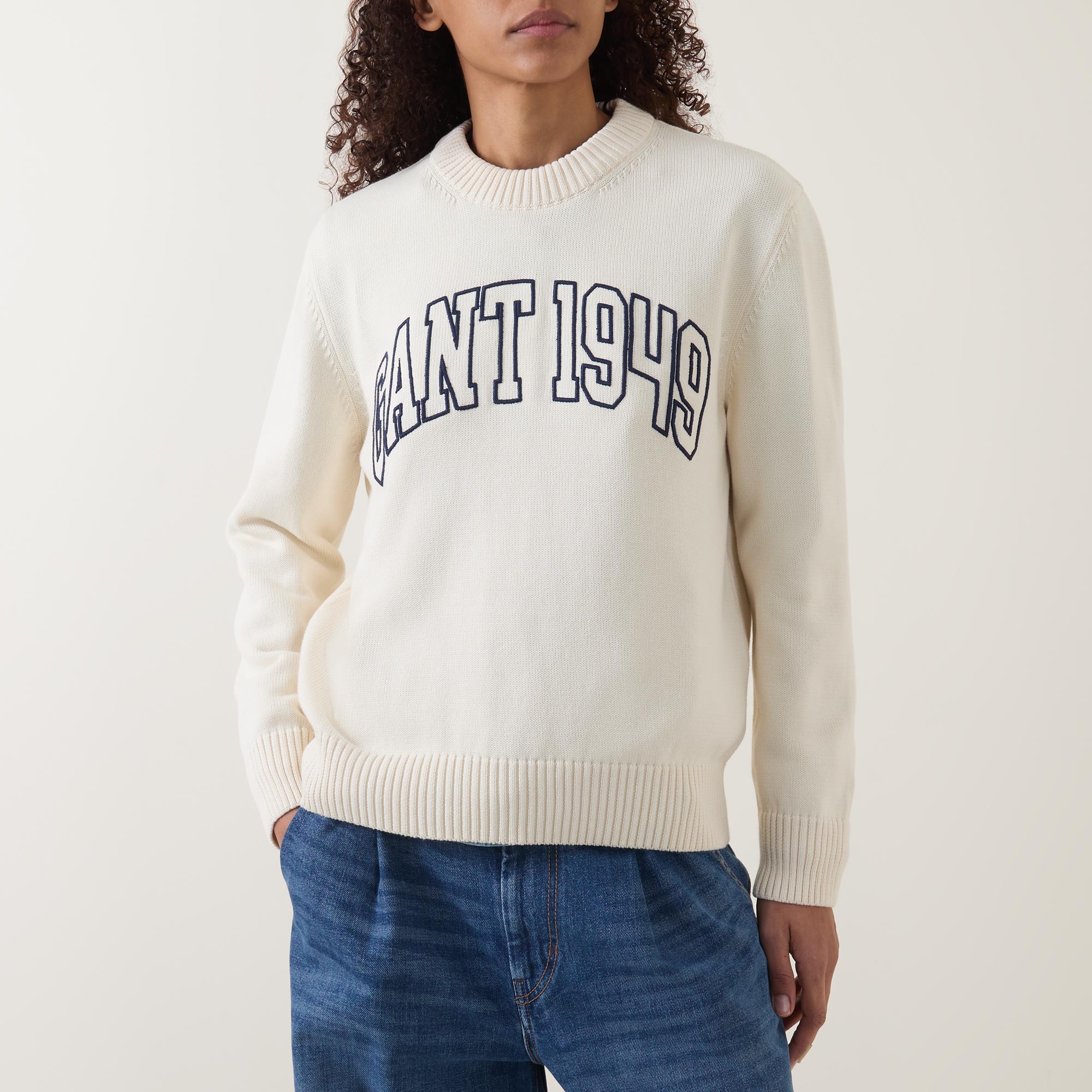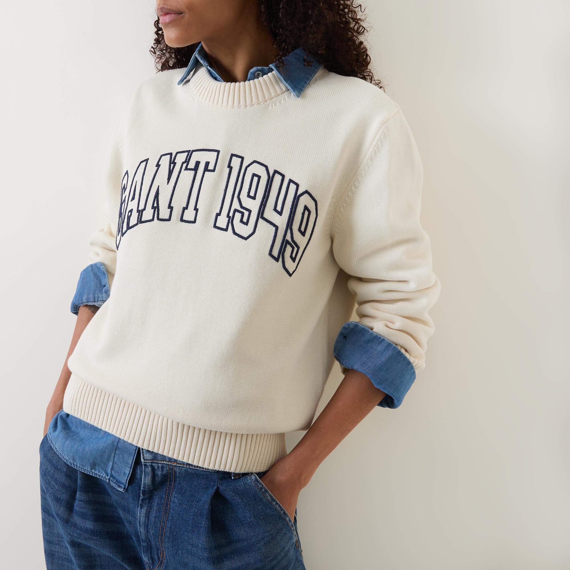• Crew neckline, long sleeves, logo detail, ribbed trims, straight hemline