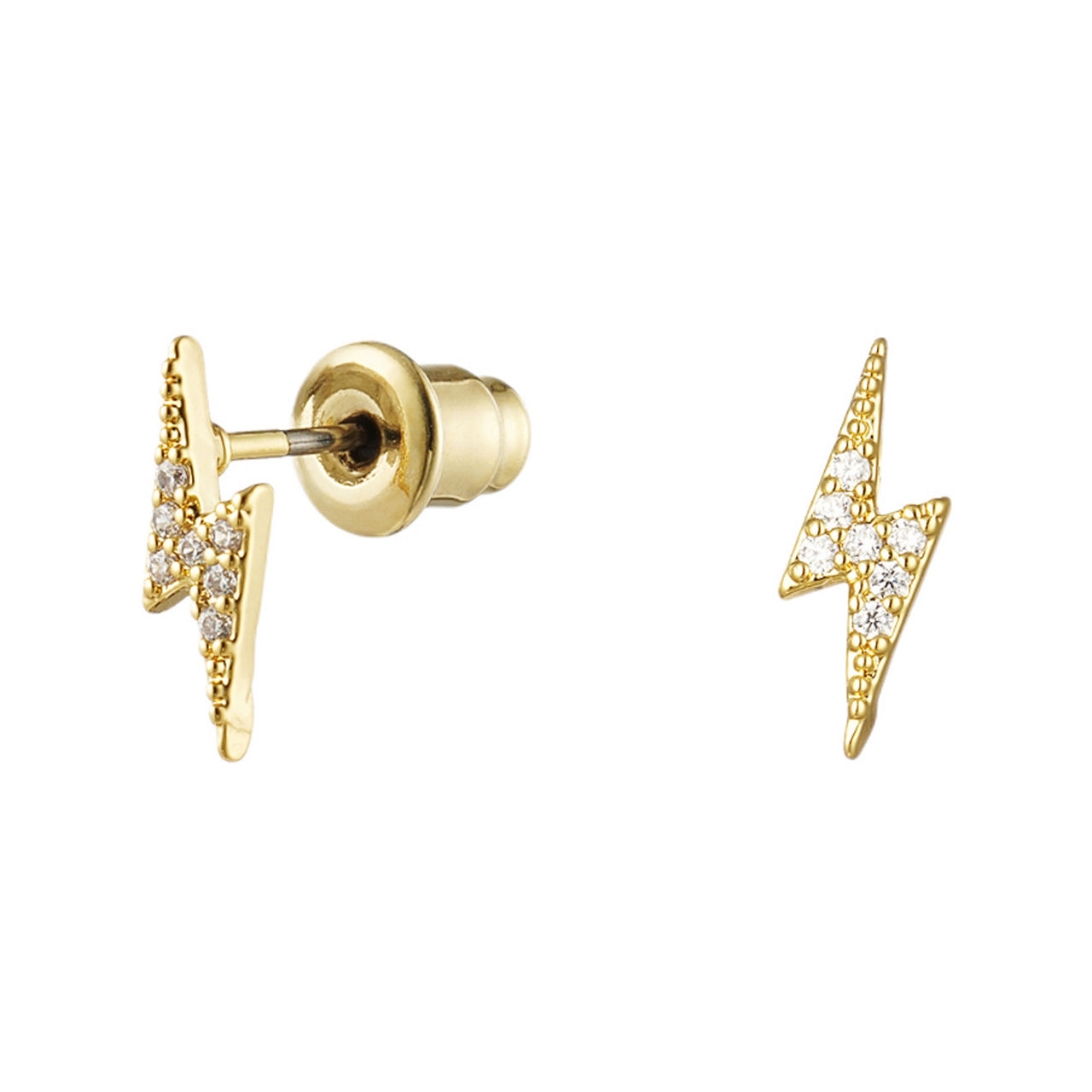 - Stud style, push back fastening, stone embellishment, lightning bolt shape, hypoallergenic, presented in a gift box