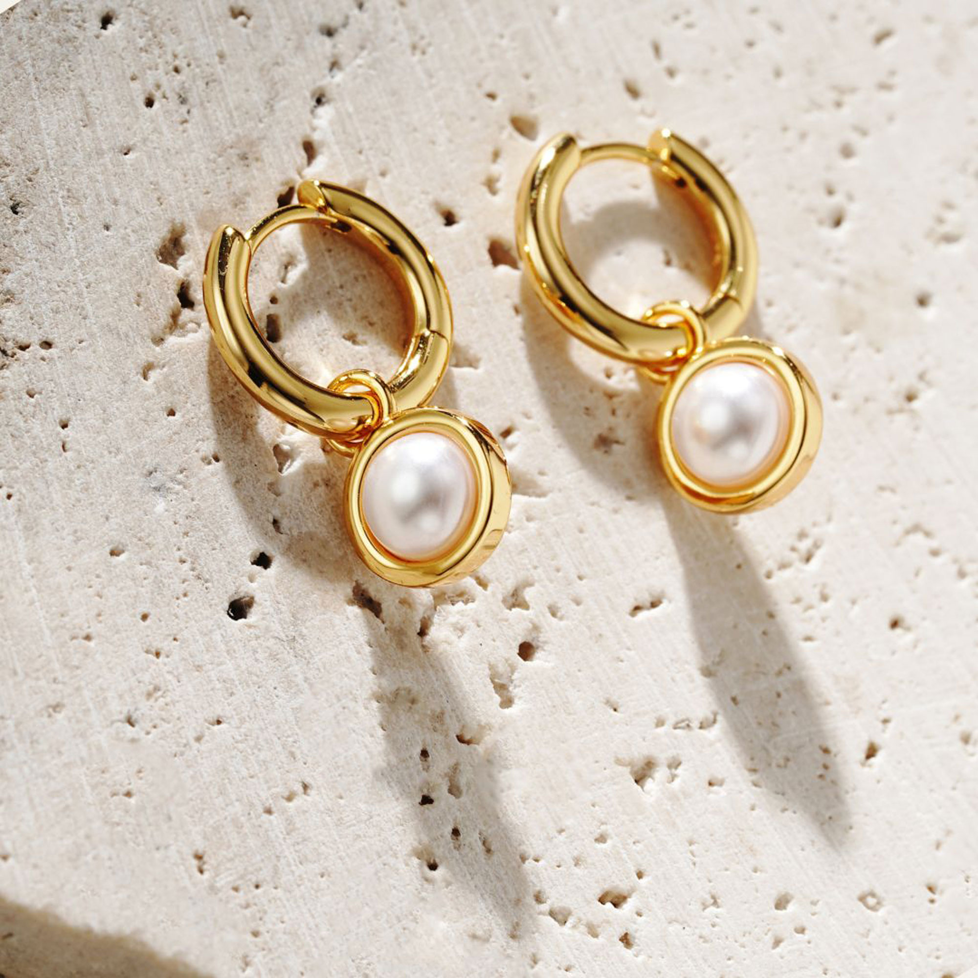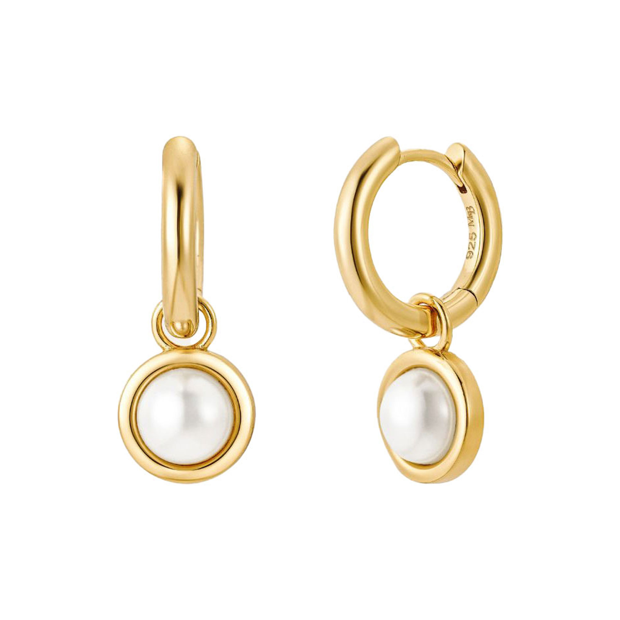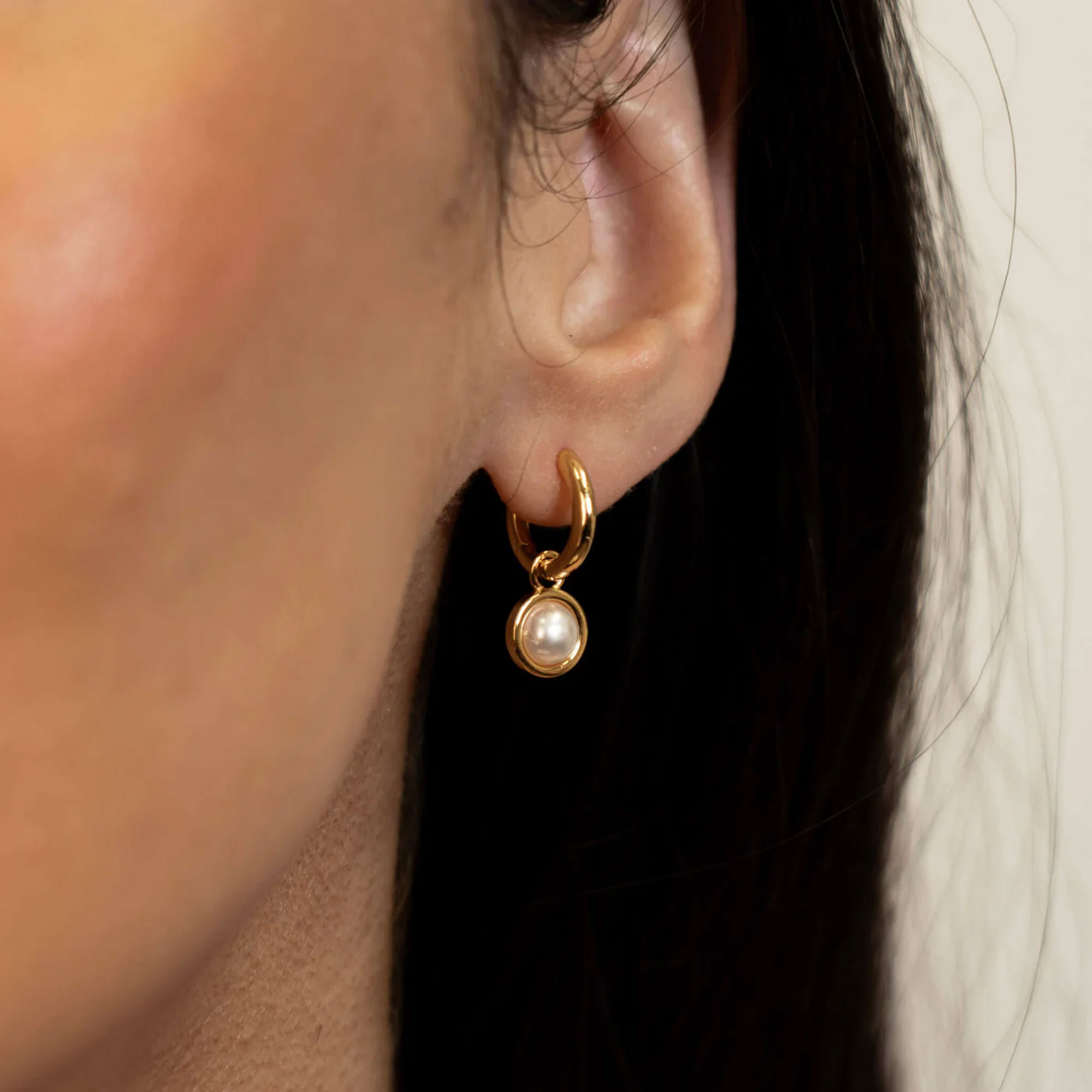 - Electrocoated which applies a protective layer to jewellery via an electrically charged solution for durability and corrosion resistance, pearl detail, hoop style, gold-toned hardware