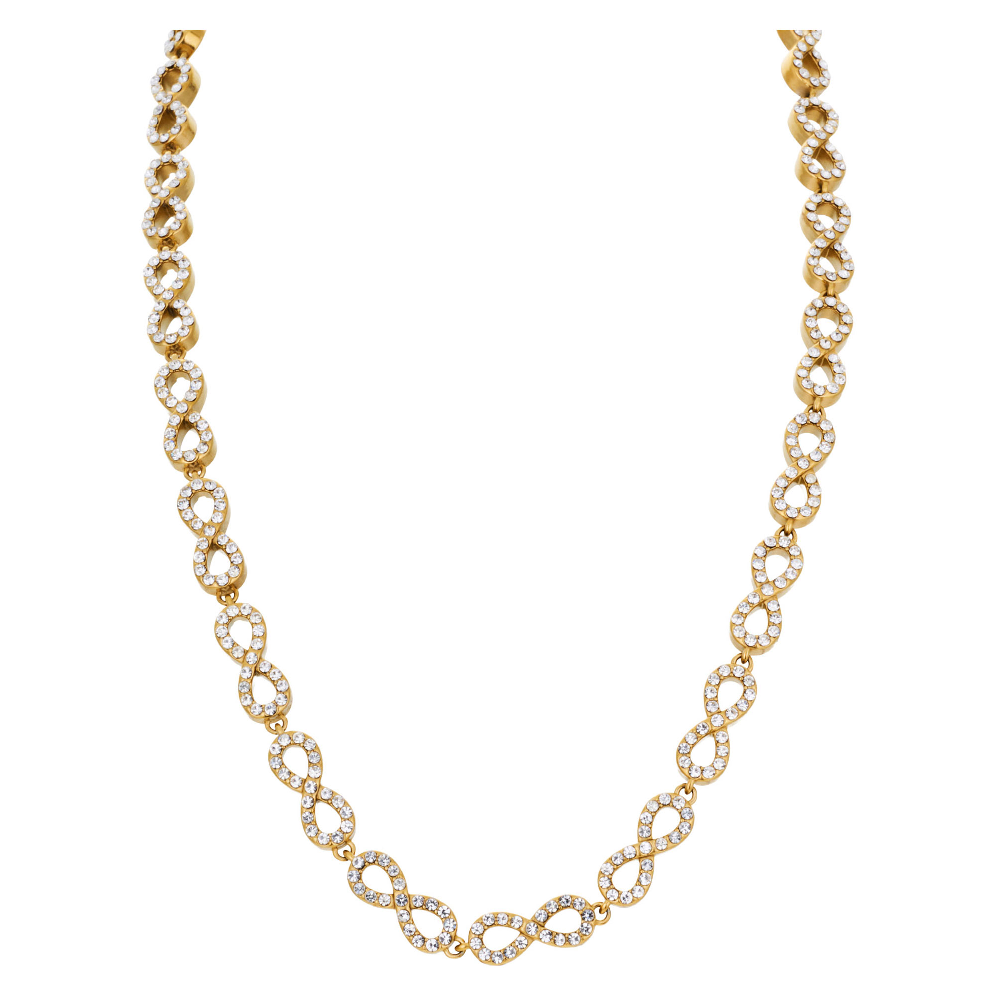 - Chain necklace, interconnected infinity sign design, stainless steel base, 18kt gold-plating, water-resistant, tarnish-resistant