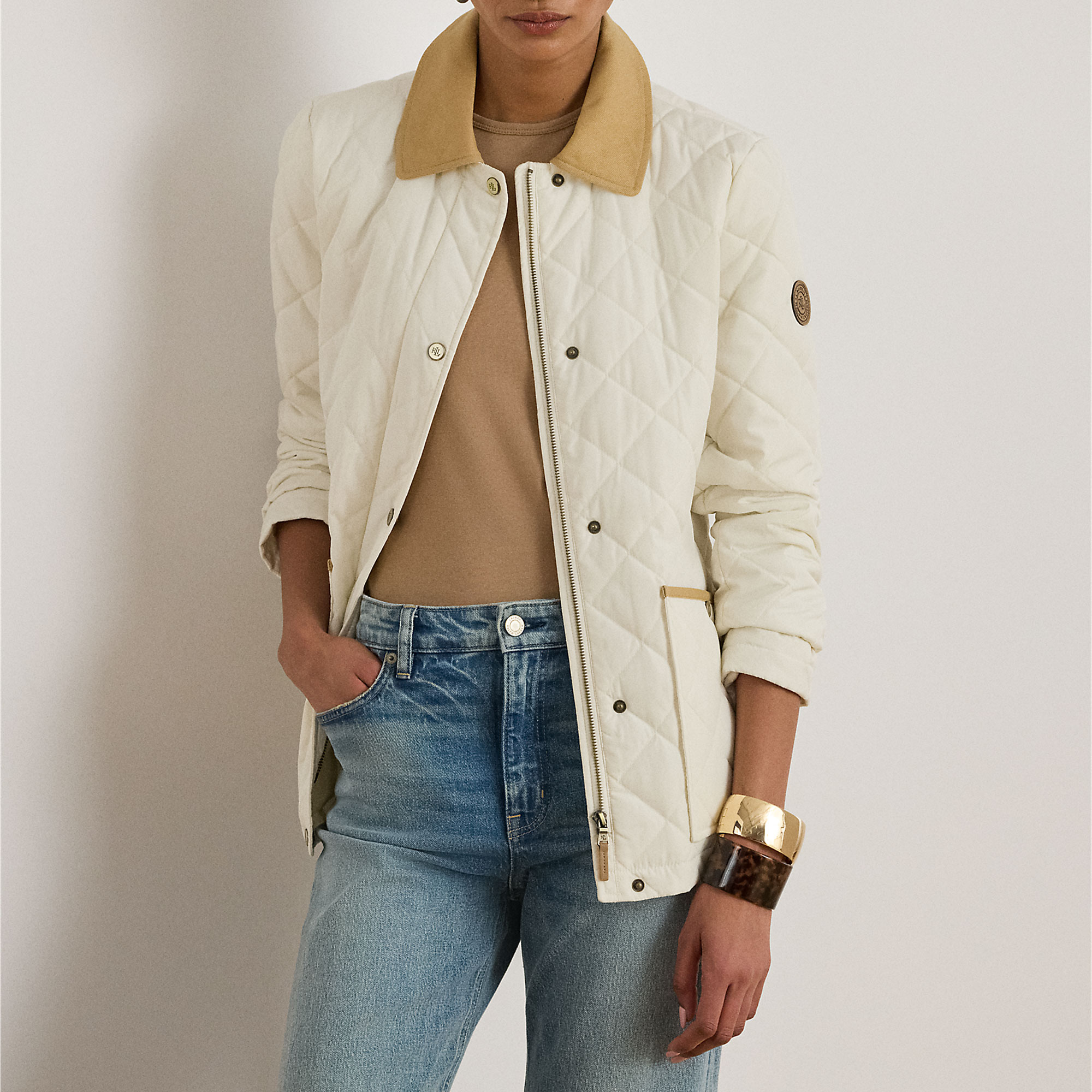 LAUREN Twill Trim Diamond Quilted Barn Jacket