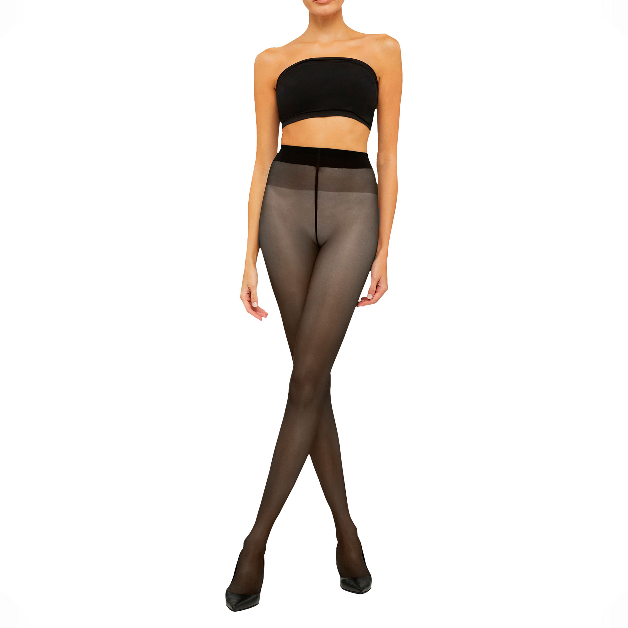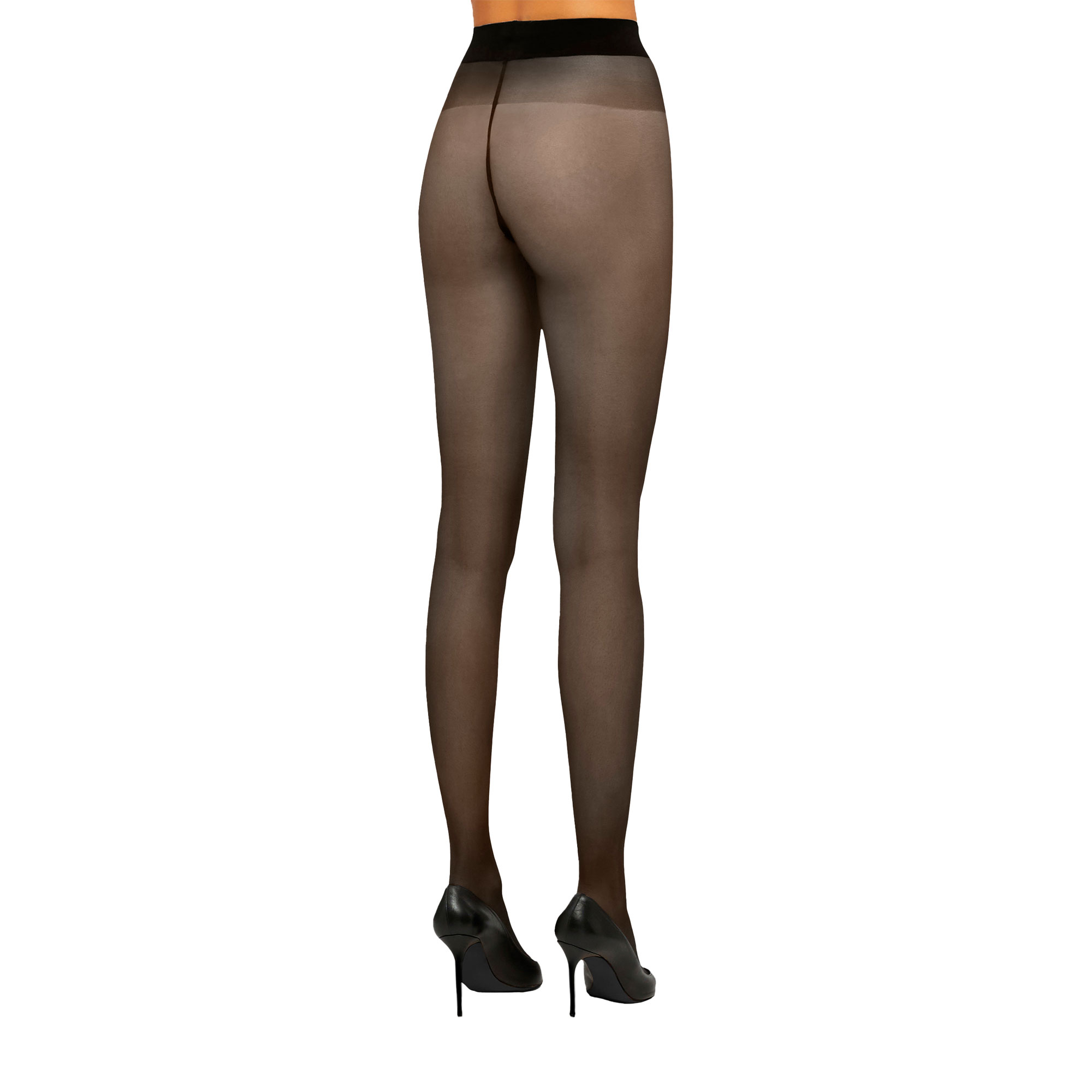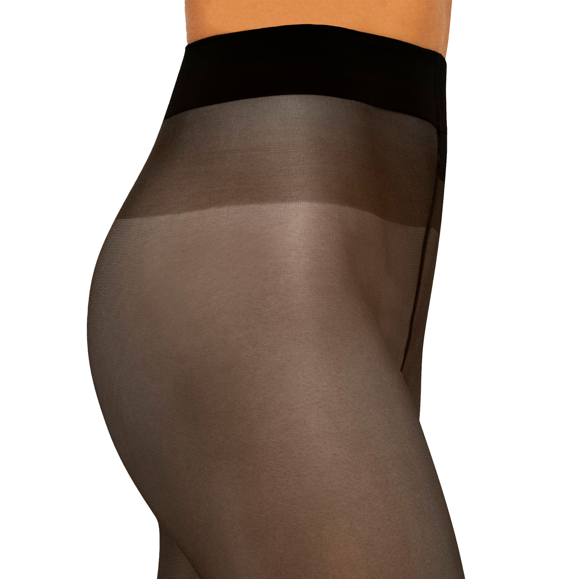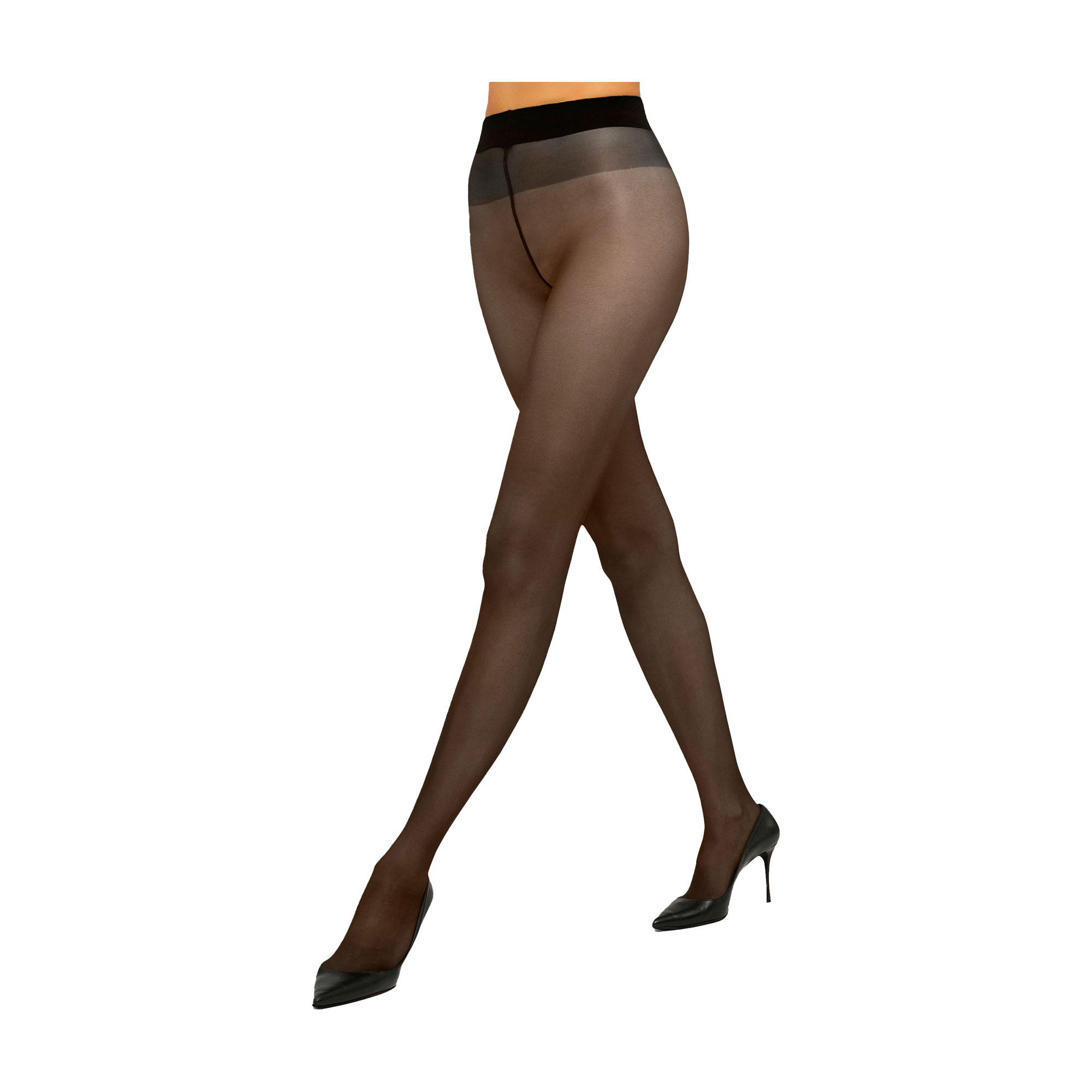- 20 denier, shimmer finish, extra-wide waistband, soft feel, sheer style, almost-invisible reinforced toe
