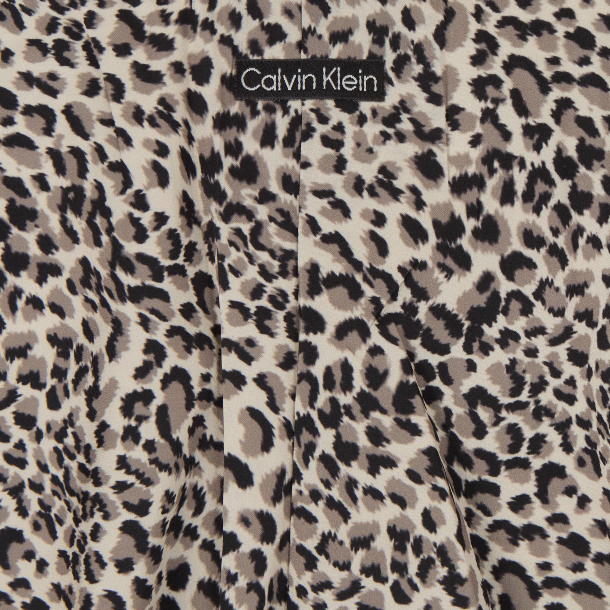 - Mid-rise, elasticated waistband, CK logo patch at the front, flared hem, leopard print pattern, stretchy satin finish