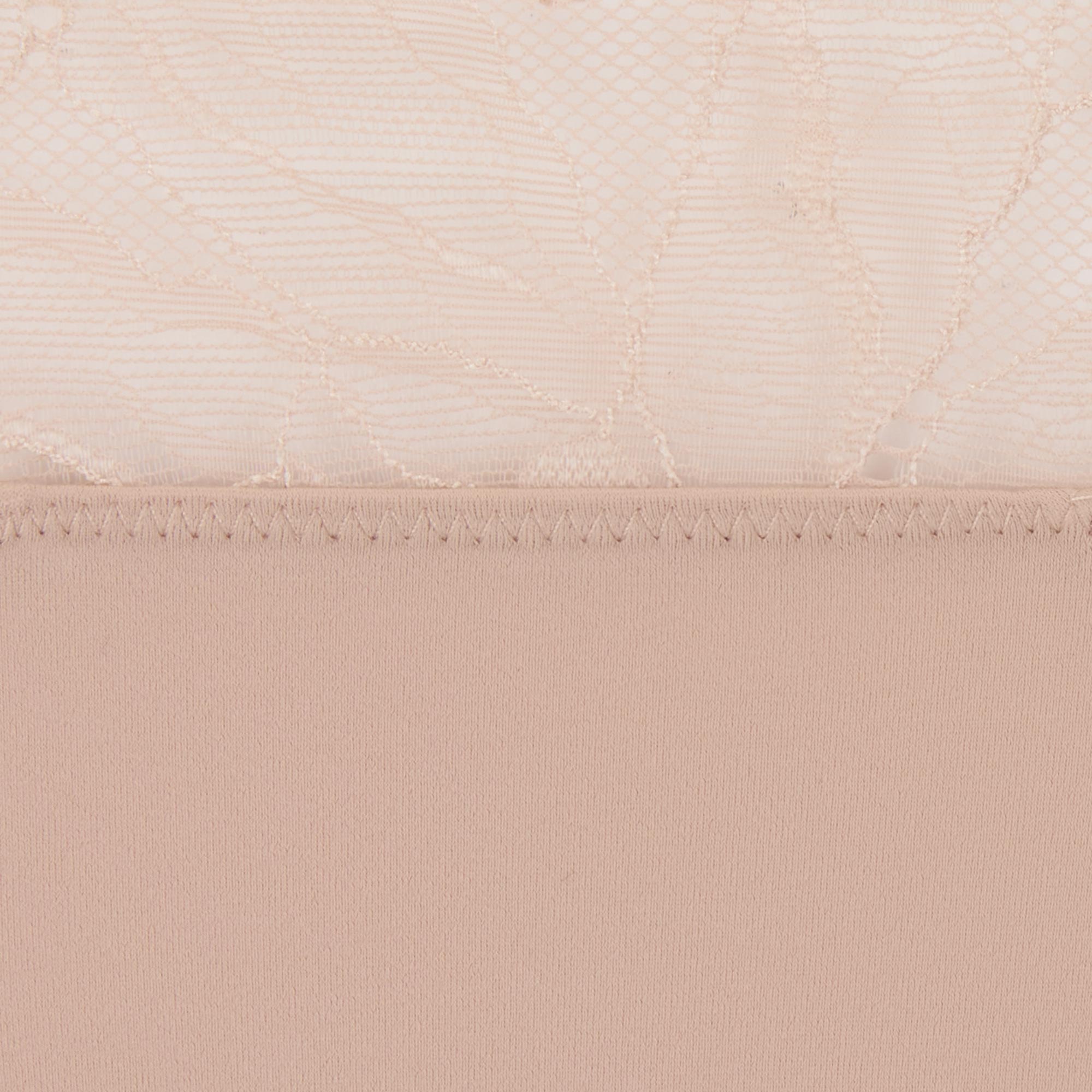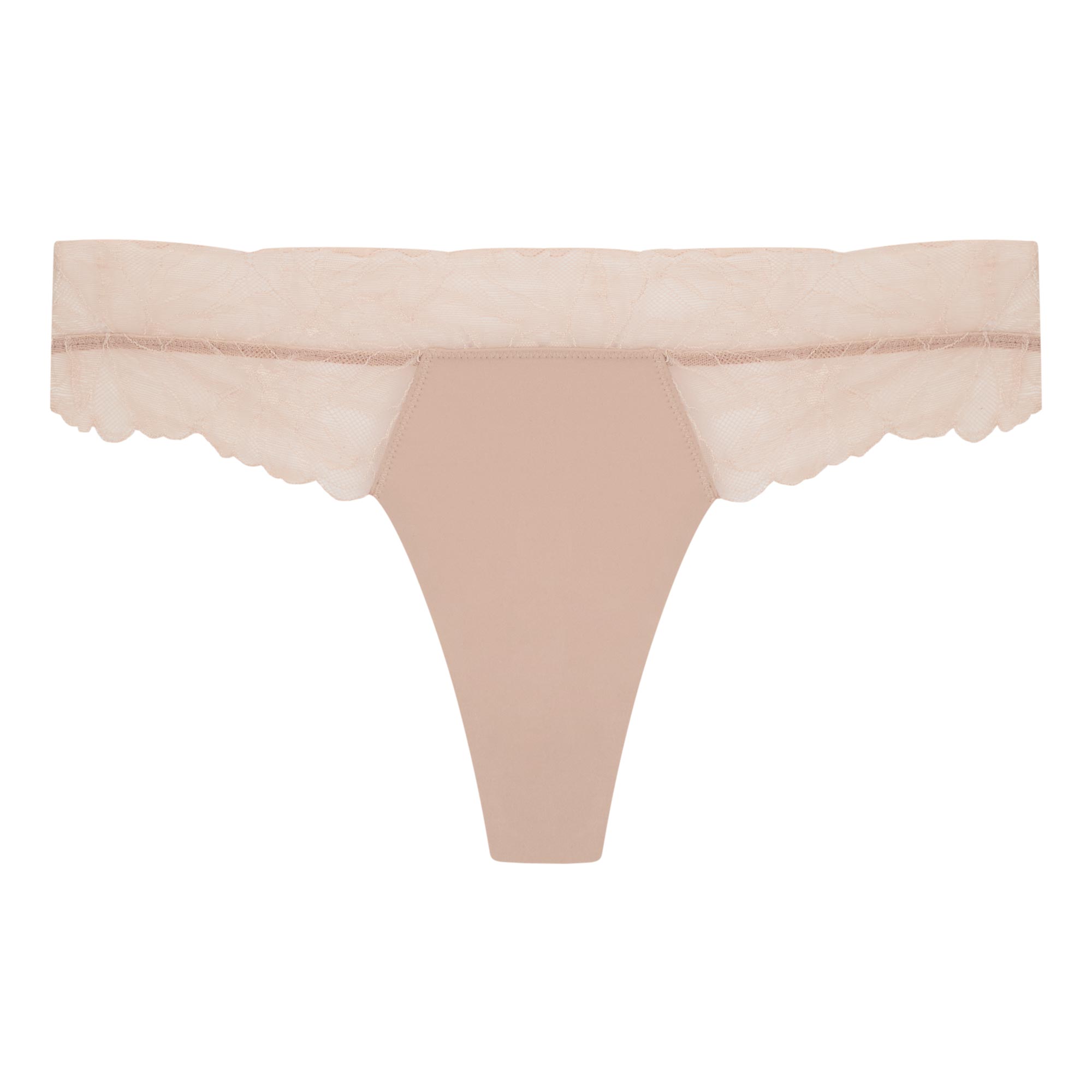 - Mid-rise high-cut legs, minimal back coverage, cotton gusset, soft and flexible logo band, bonded edges, lace embellishment
