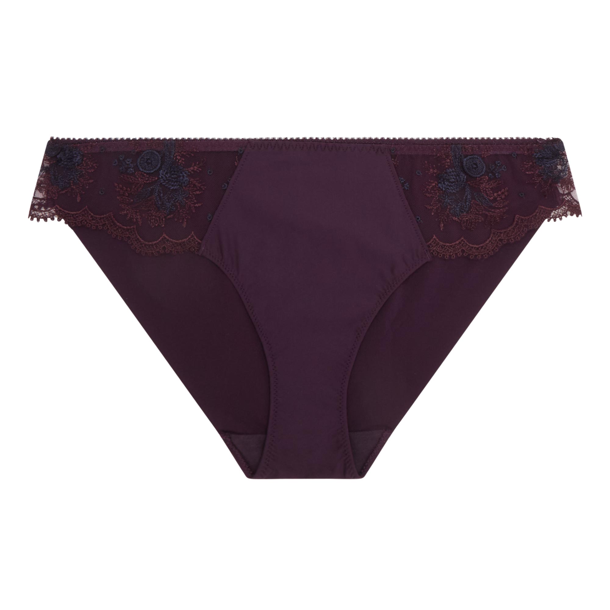 • Floral lace trims, elasticated, brief style, scalloped edges, lined gusset