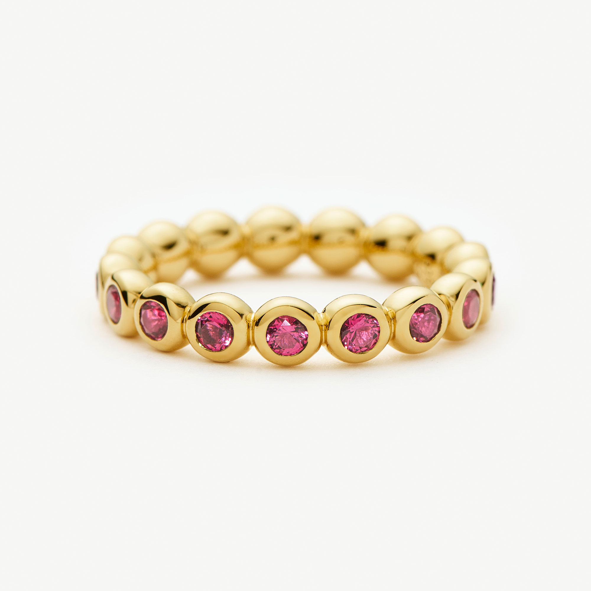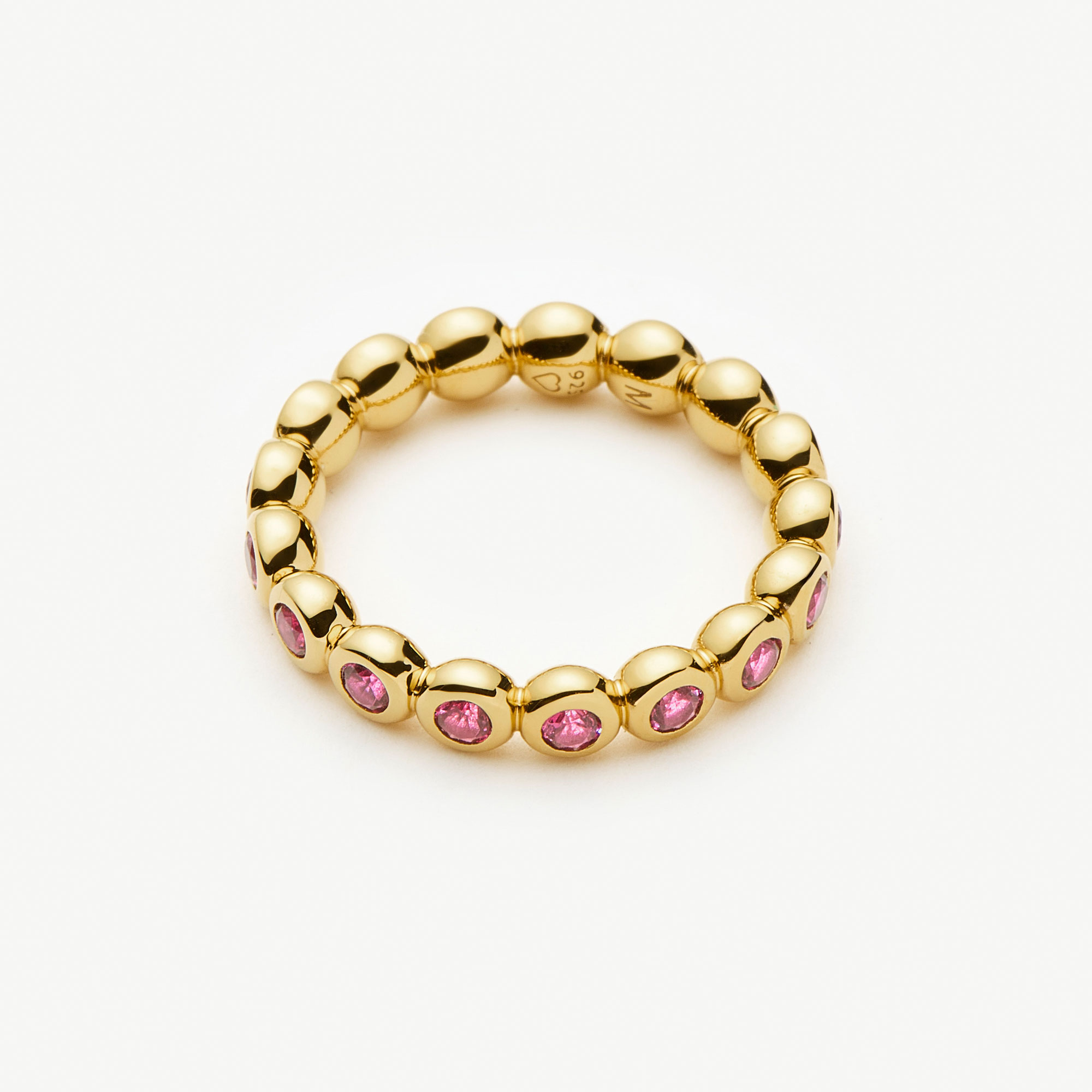 - Eternity style, beaded detailing, ruby cubic zirconia embellishment