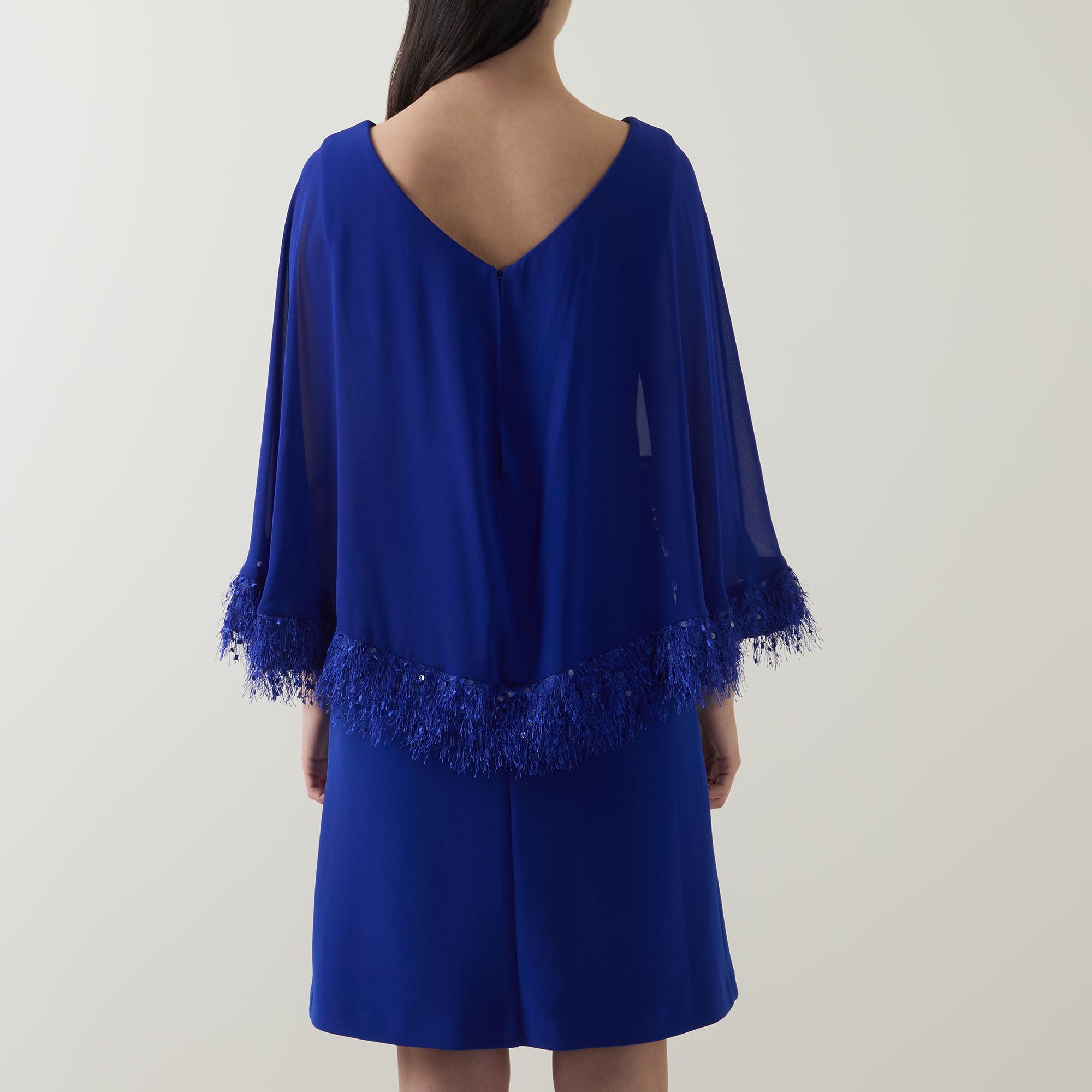 JOSEPH RIBKOFF Feather-Trim Cape Dress