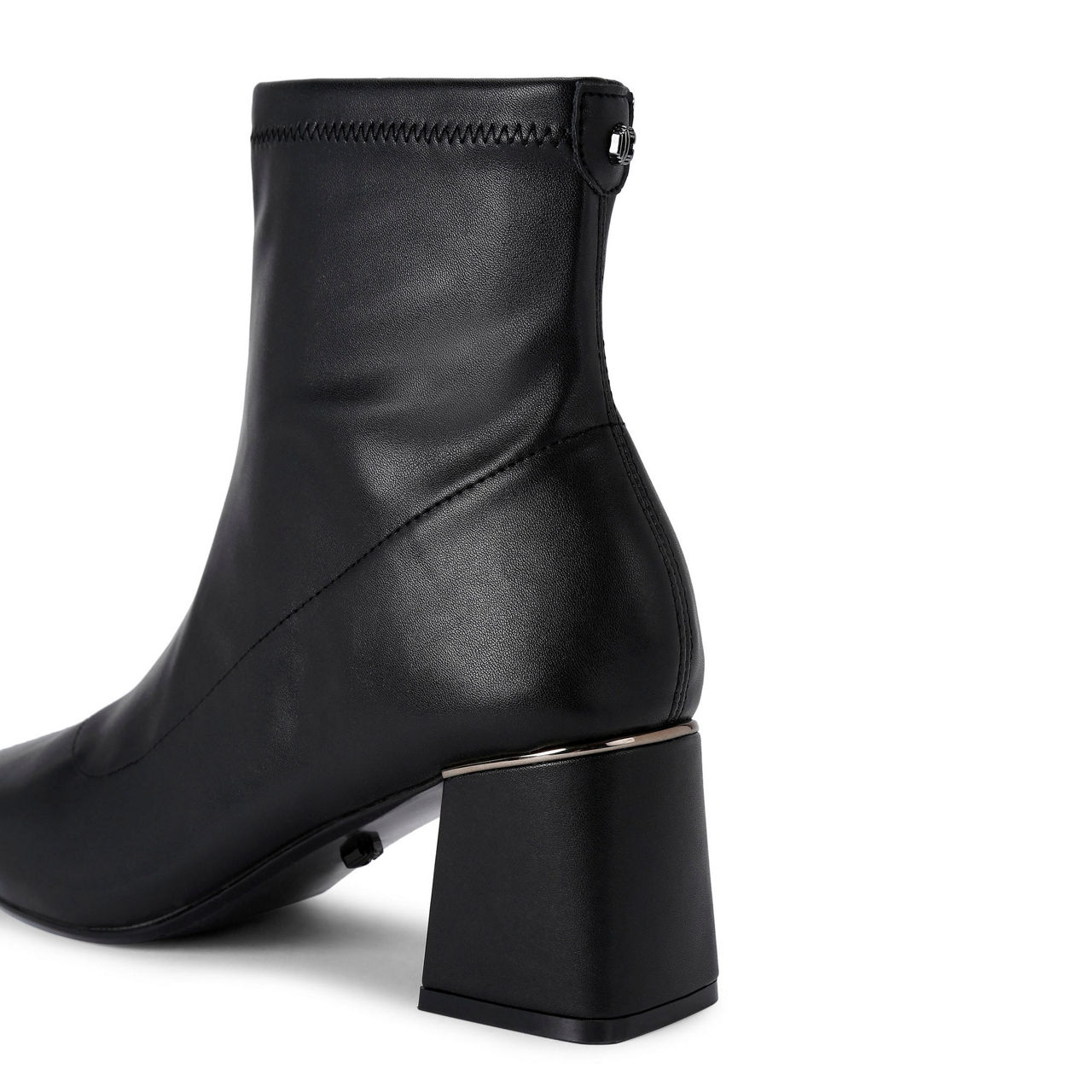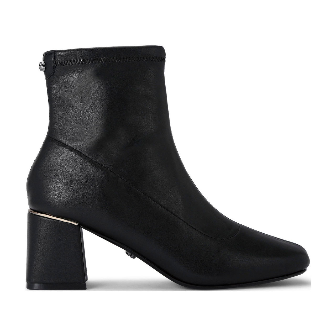 - Squared toe, ankle length, side-zip fastening, gunmetal-tone hardware, block heel, stitch details, logo details