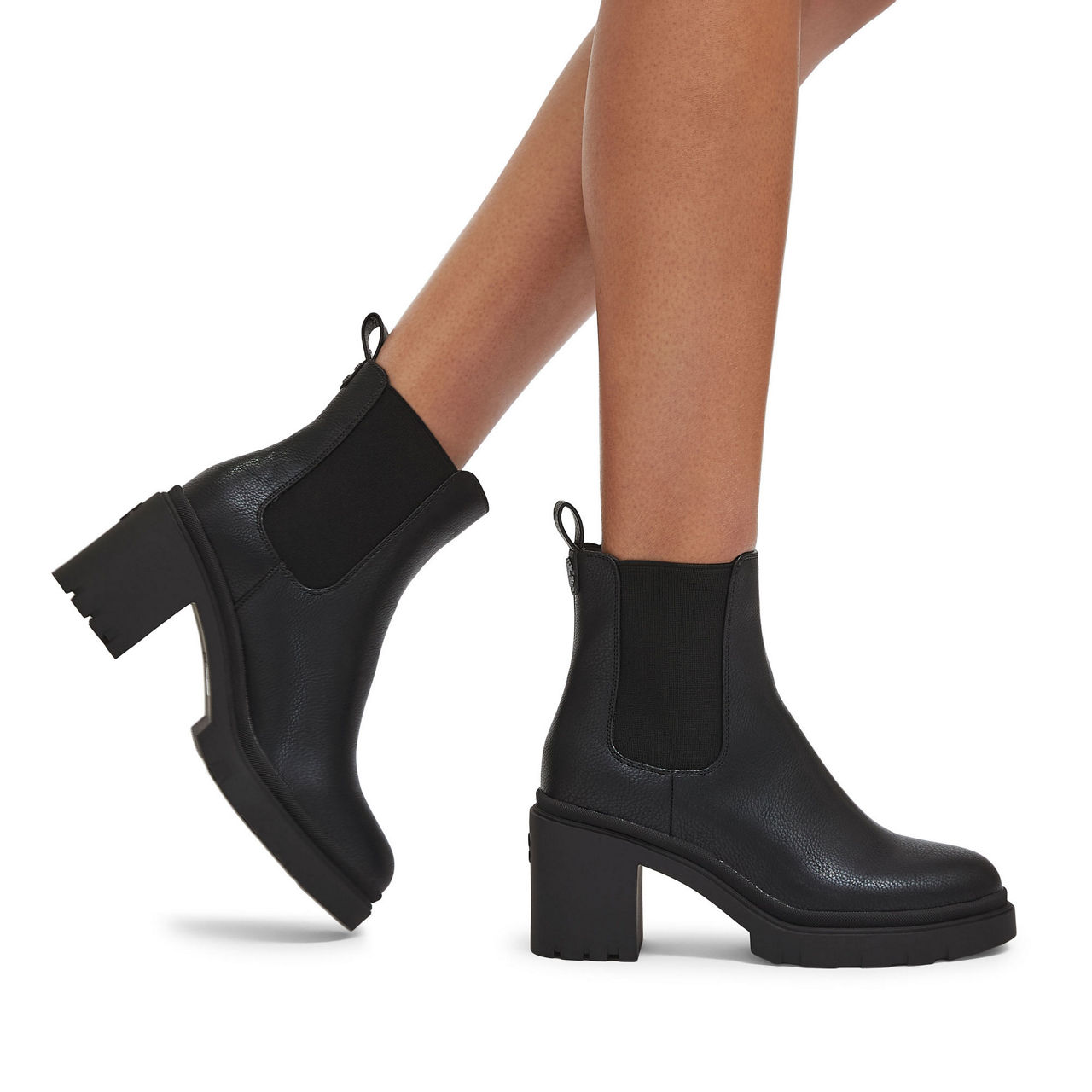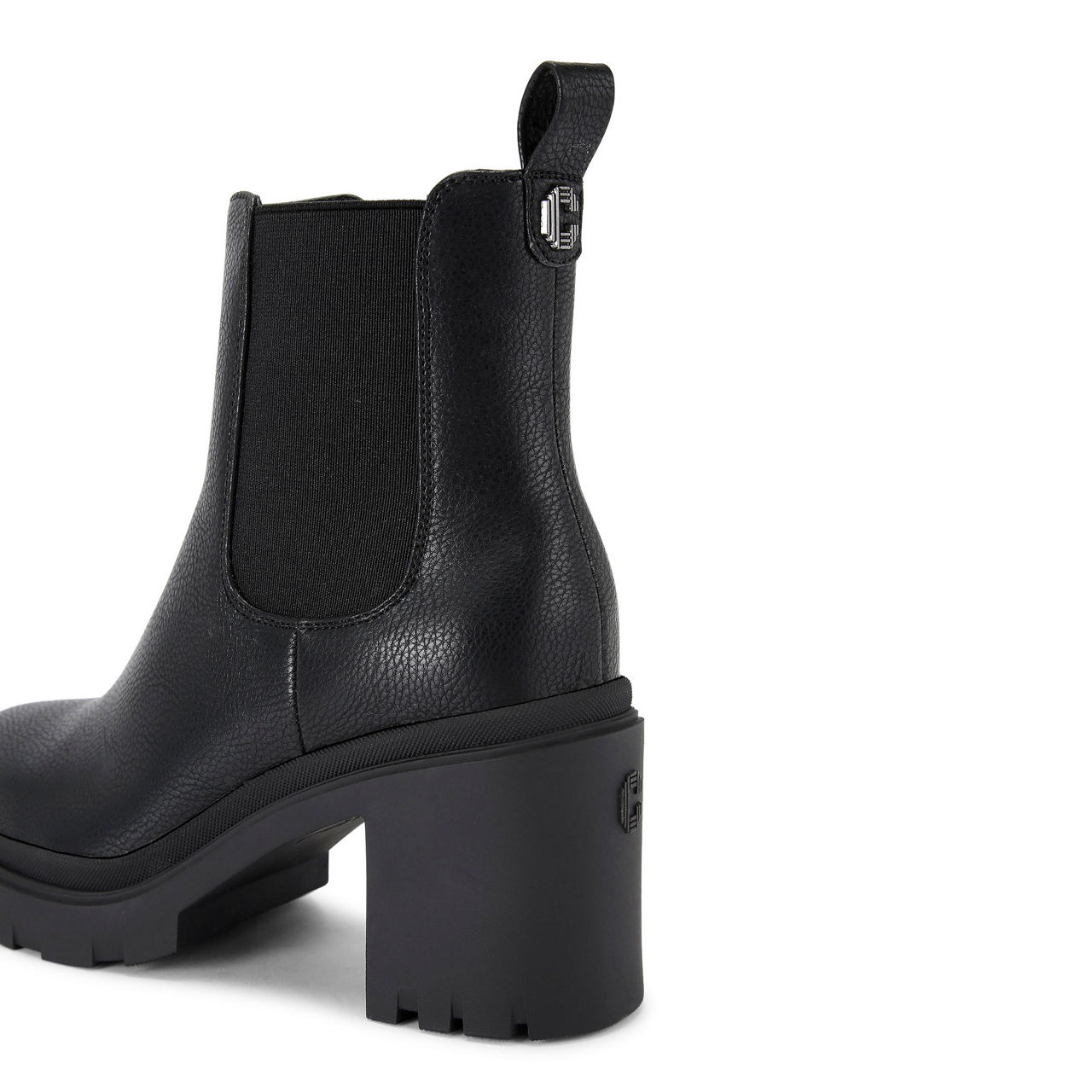 • Elasticated side panels, slip-on style, gunmetal Icon C heel stud, heel pull tab, round toe, block heel