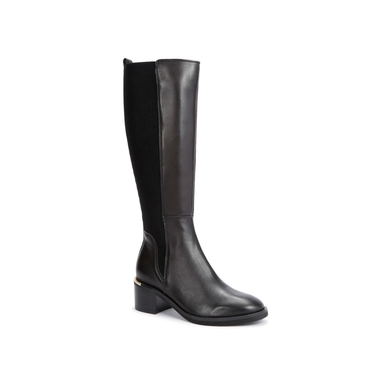 - Knee high boot, elasticated panel, gold tone Icon C stud at the back