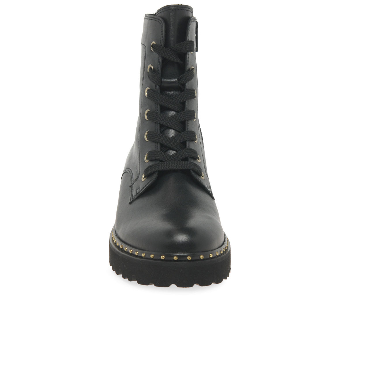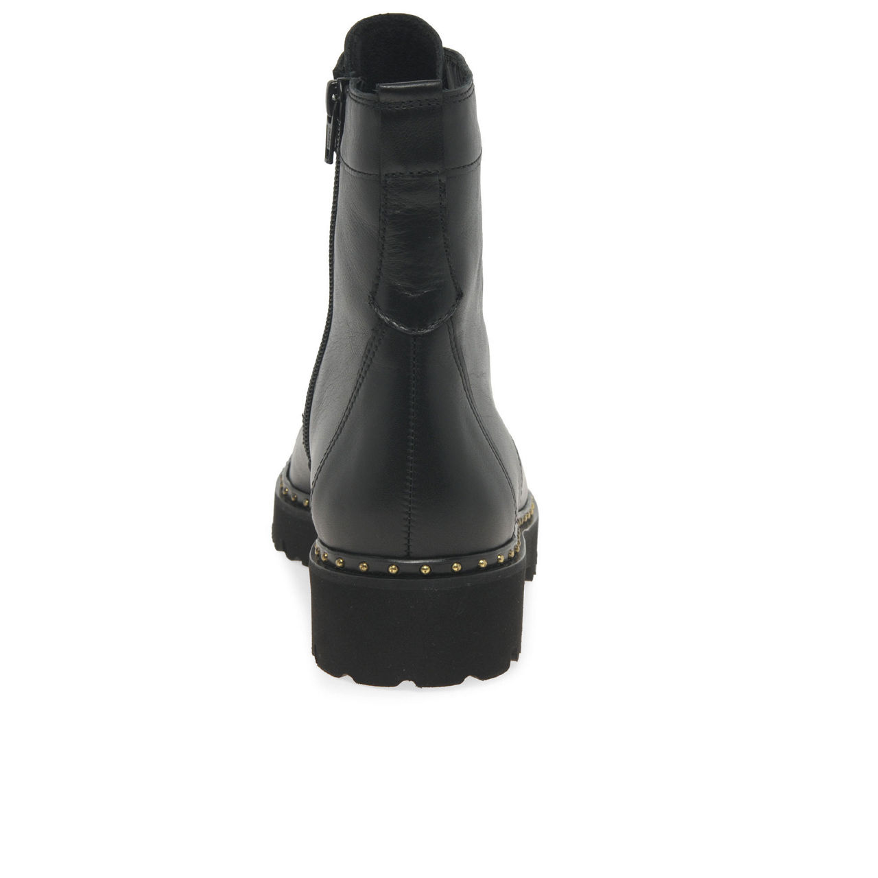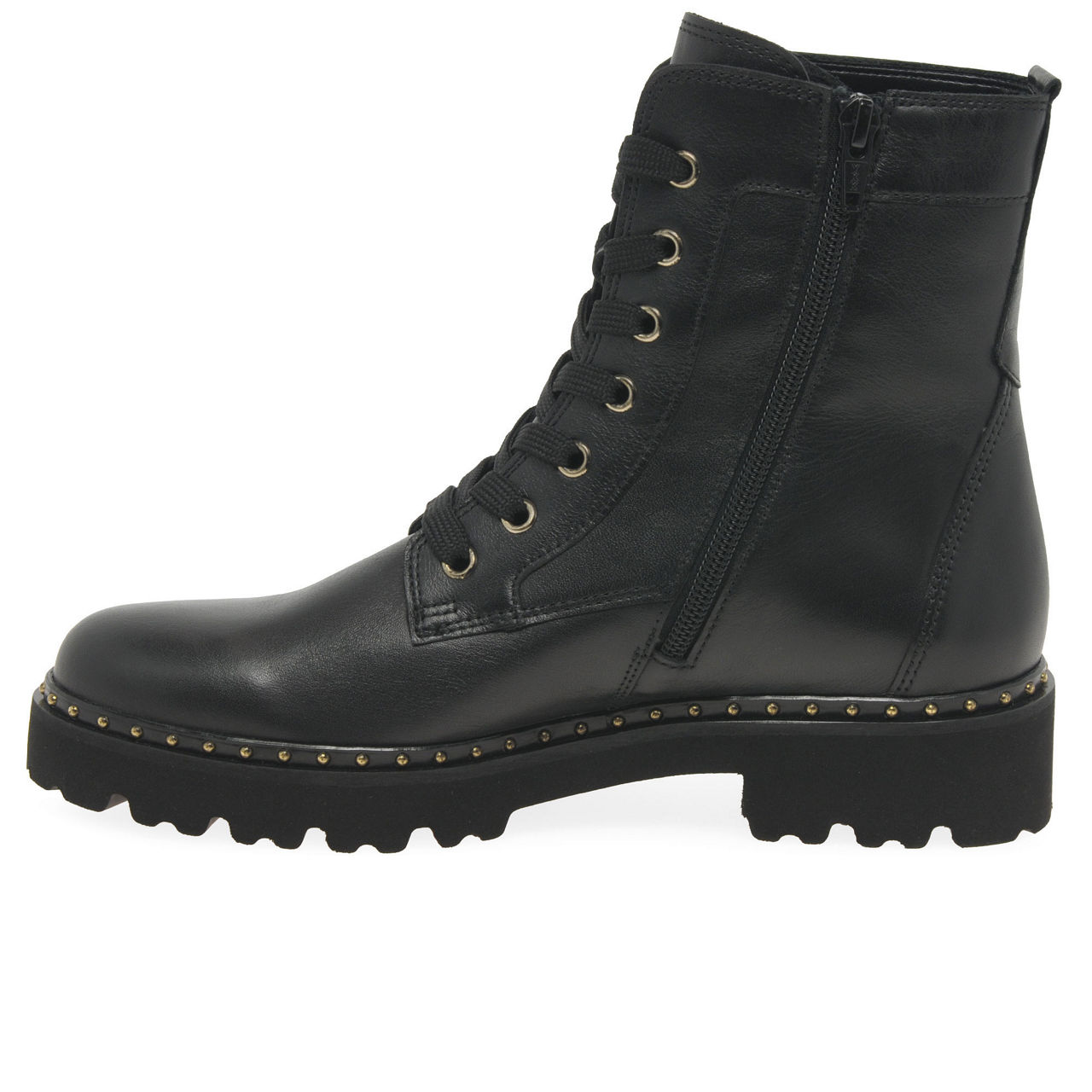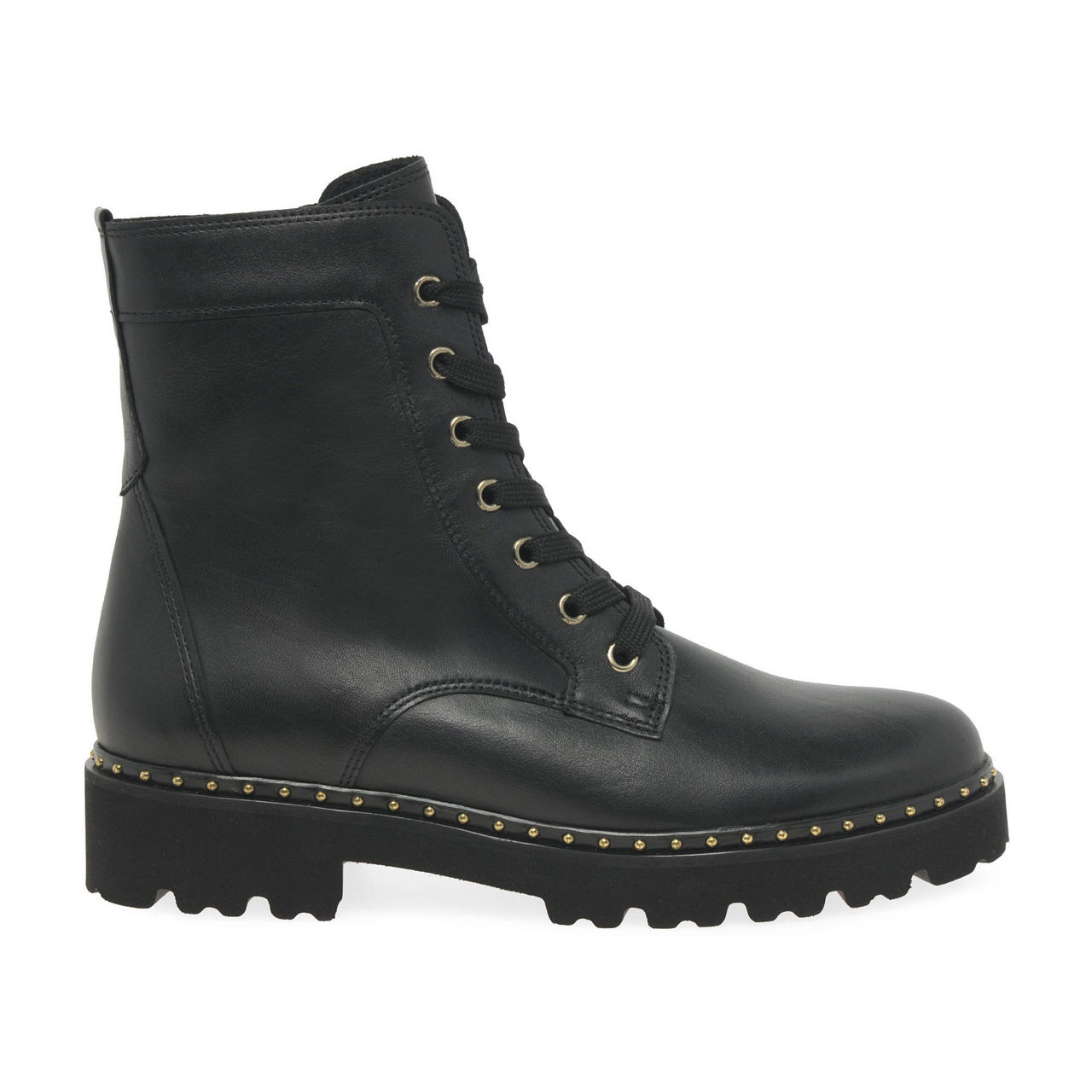 A timeless biker boot design to add to your collection, the Gabor Cambell women's boots offer a unique edge to your everyday outfits with smooth leather uppers sitting atop chunky cleated soles and decorated with gold metallic stud details.