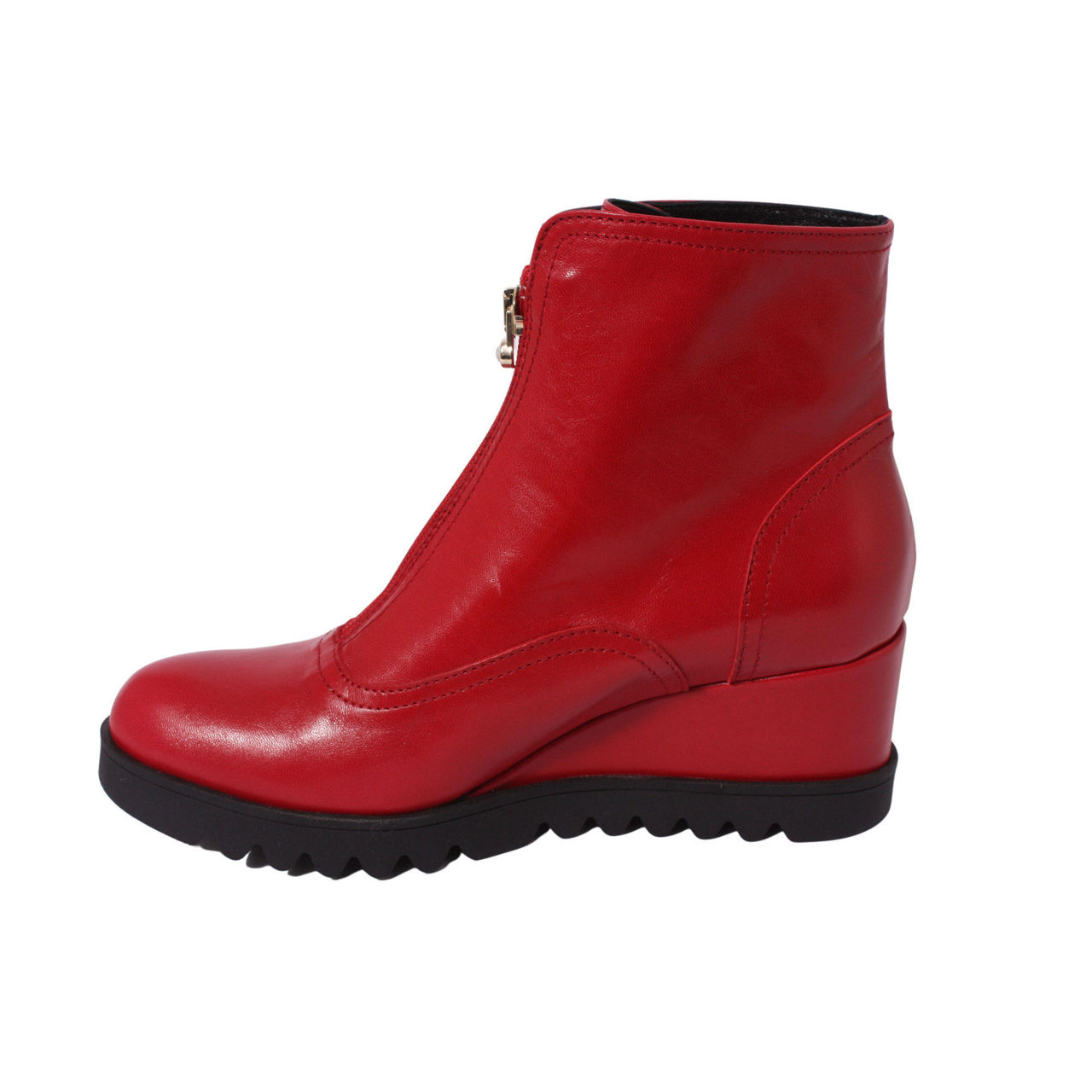 This Chiara wedge boot is a classic style that continues season after season. With the front zip fastening, elasticated side panels and easy to wear mid wedge boot will give you plenty of support for everyday wear. Available in black, navy, red and grey leathers. Made in Italy.