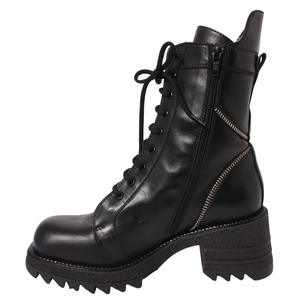 - Leather uppers, leather lined, man-made sole, 60mm heel, comfort fit, lace-up, colours black- brown, Made in Italy.