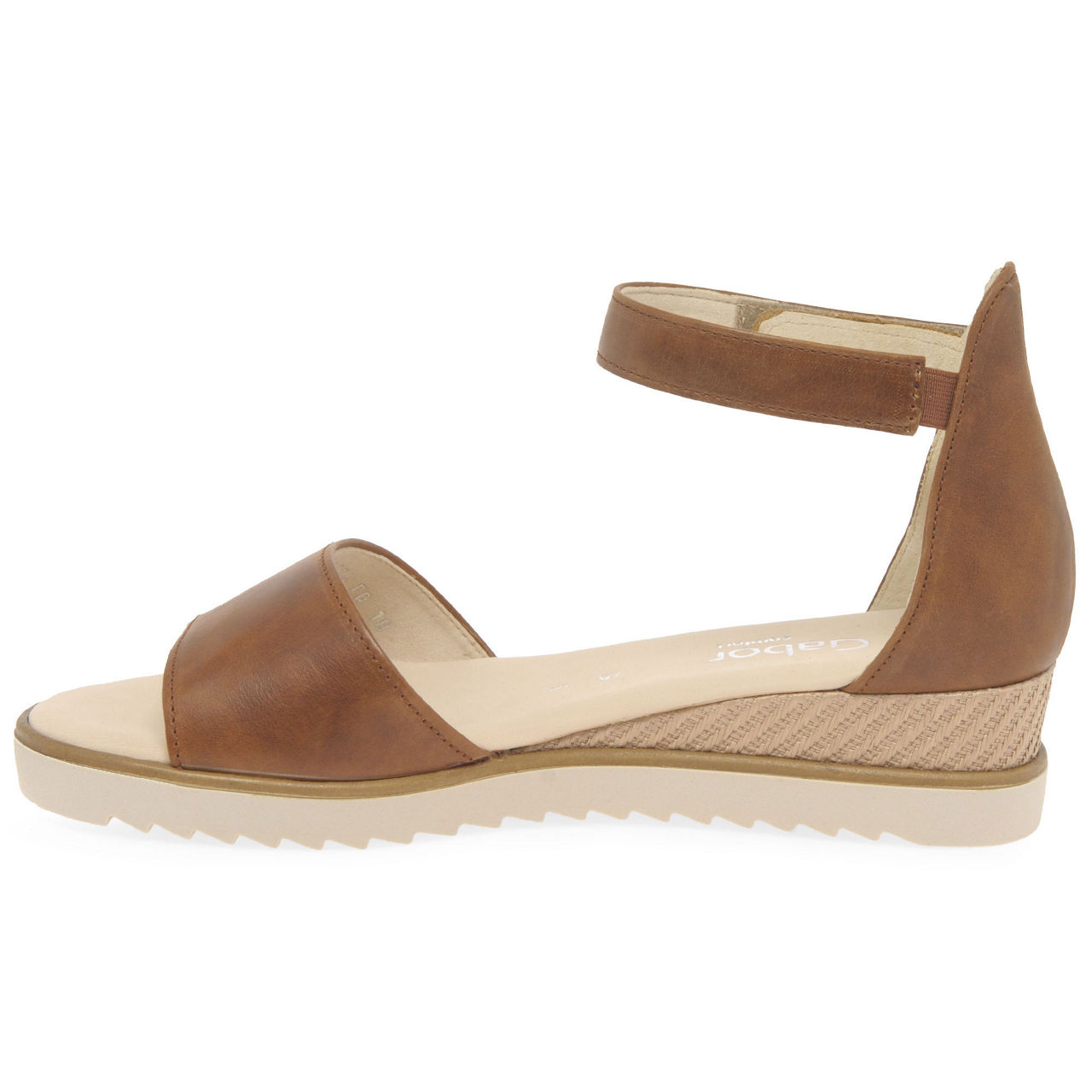 - Rip-tape ankle fastening, covered low wedge sole, wide foot strap, round open toe