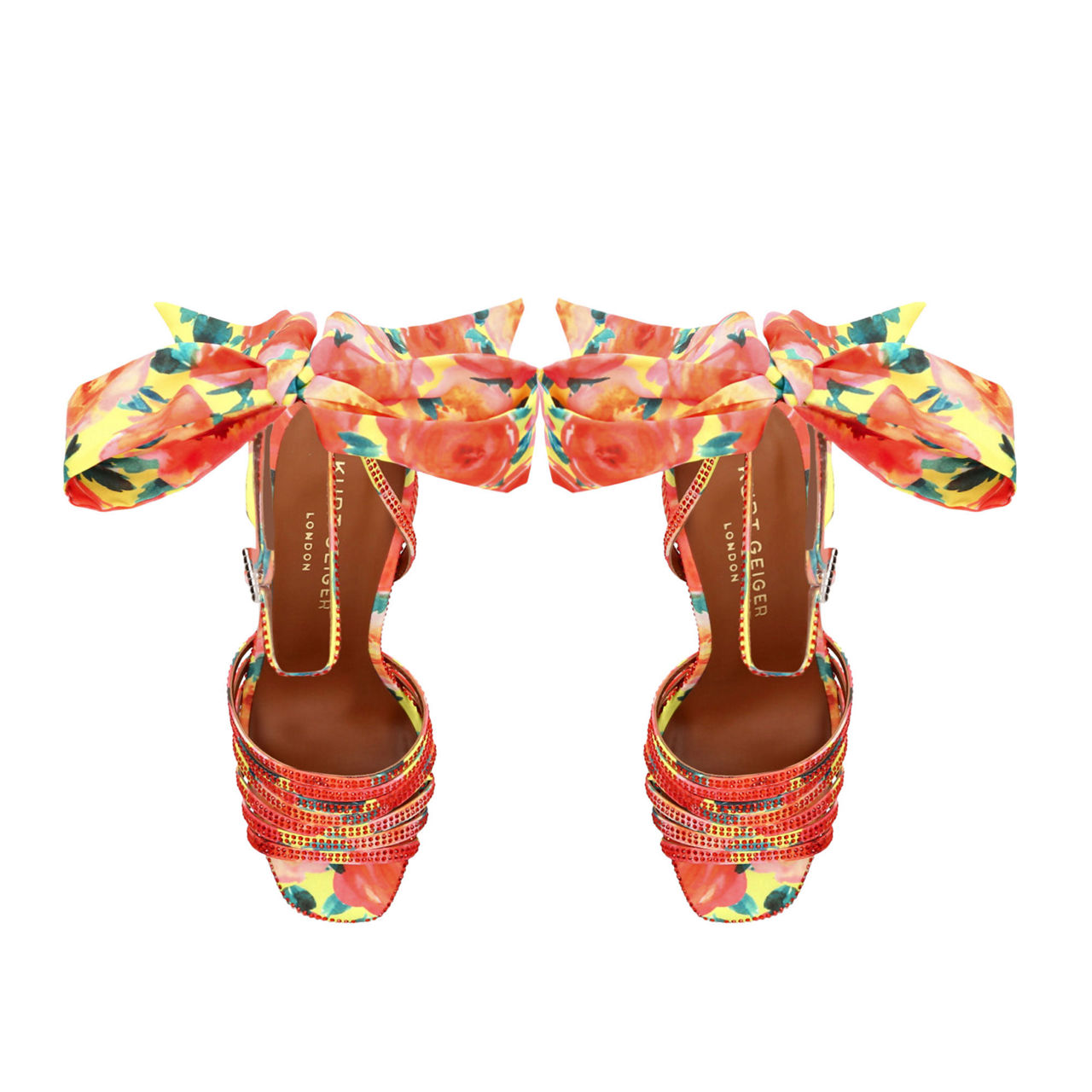 Kurt Geiger London's Pierra styles are full of colourful fun for a party-filled summer. This pair of platform sandals works a strappy design in vibrant orange, while they're encrusted in shimmering crystals and finished with a fabric tie. Slip on this statement design with your favourite party outfit for maximum results.