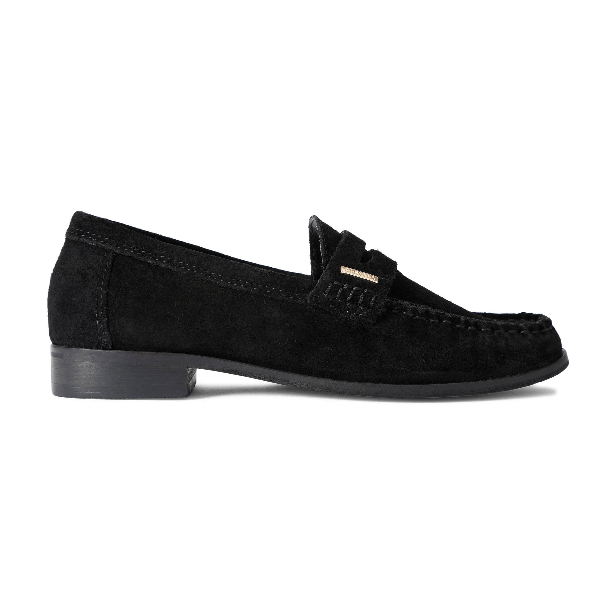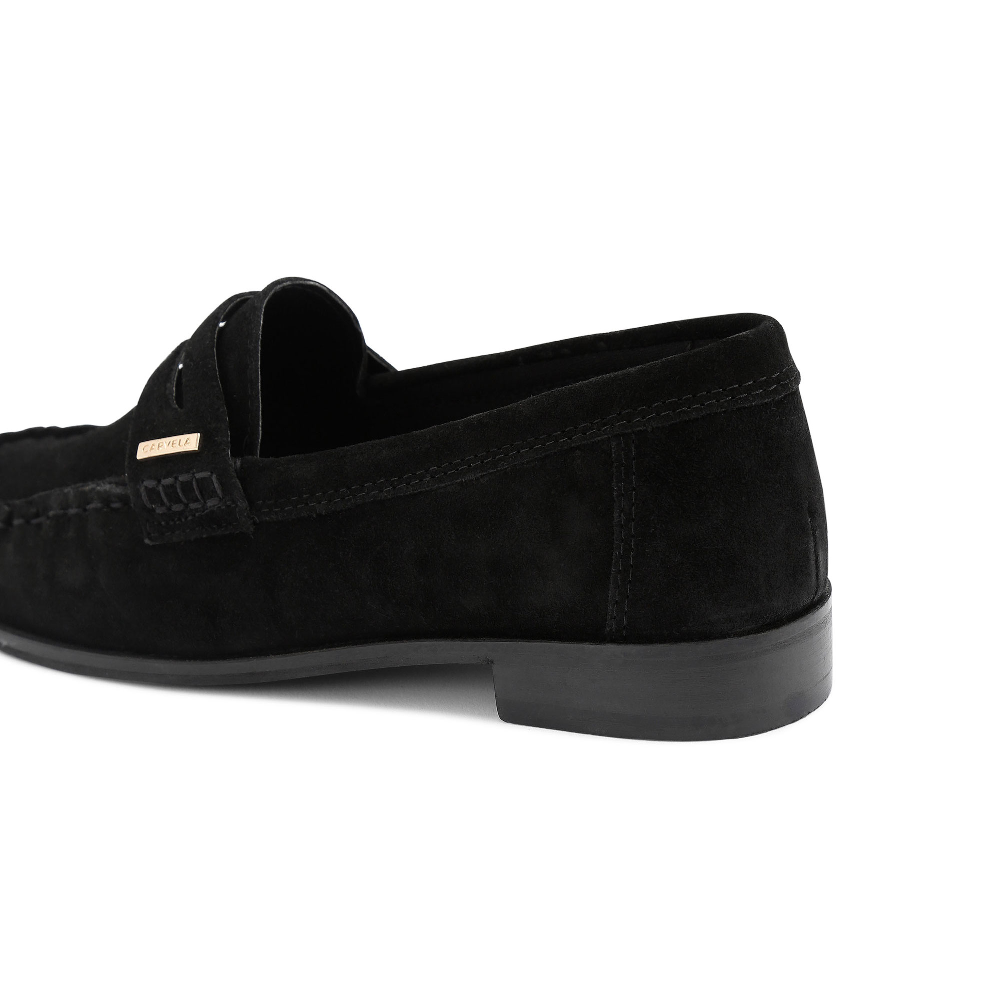 - Loafer style, suede leather, stitching details, cut-out strap detail