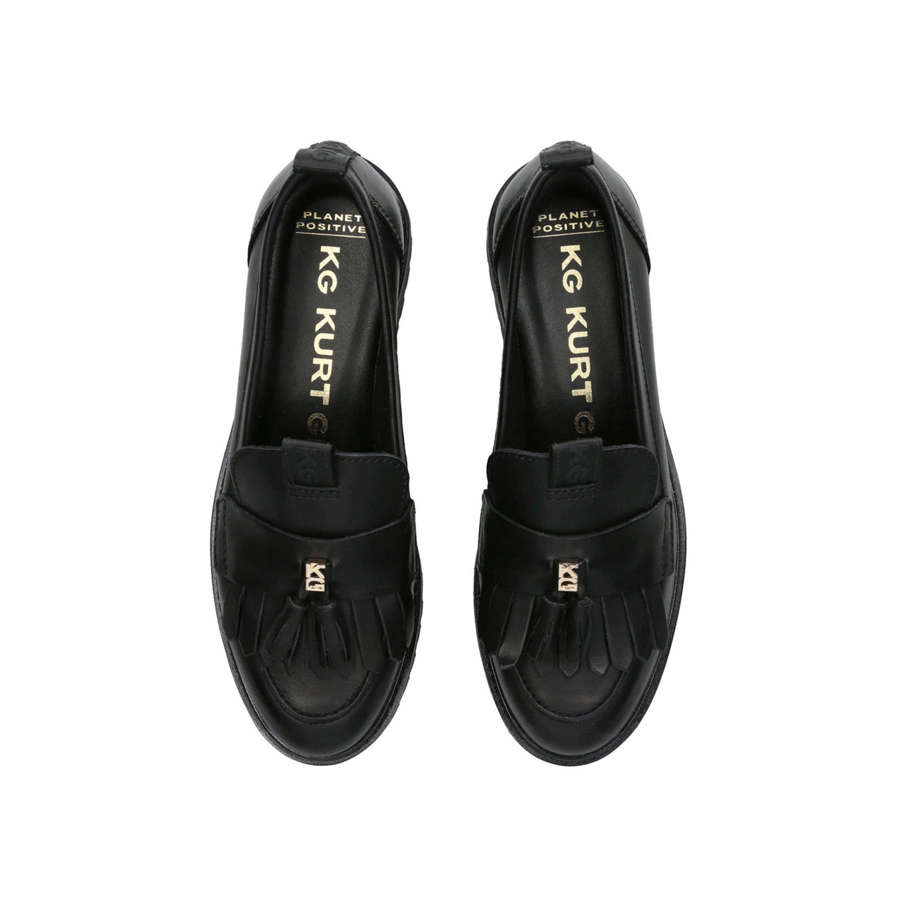 - Slip-on loafer, two tassel details, two KG Kurt Geiger branded tabs on the tongue and heel