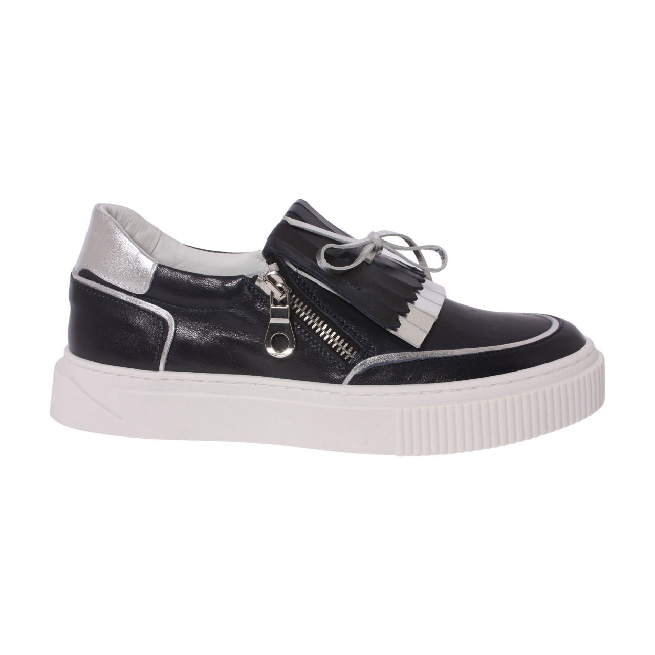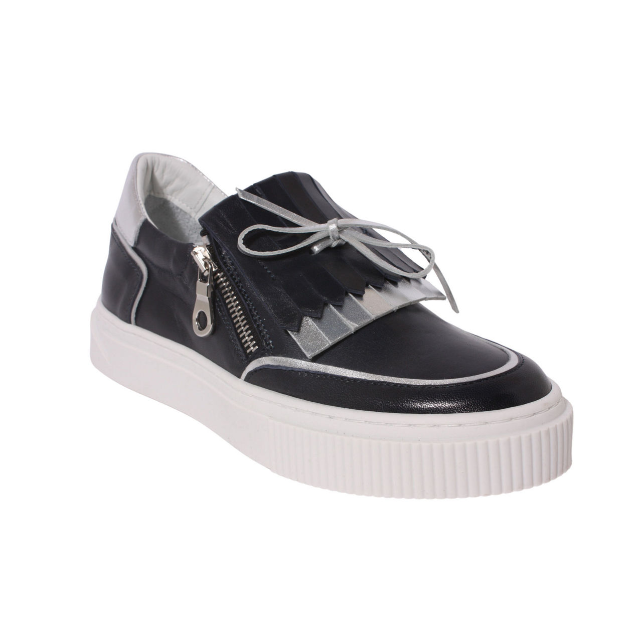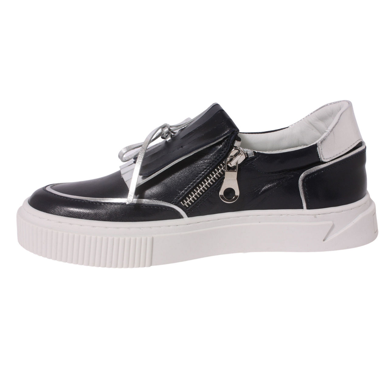 This hybrid sneaker will revolutionize your spring summer wardrobe. With the fringe detailing on the front and sportive side zip to the side combined with the comfortable wedge sole is available in navy, pink and cream leathers. Made in Italy.