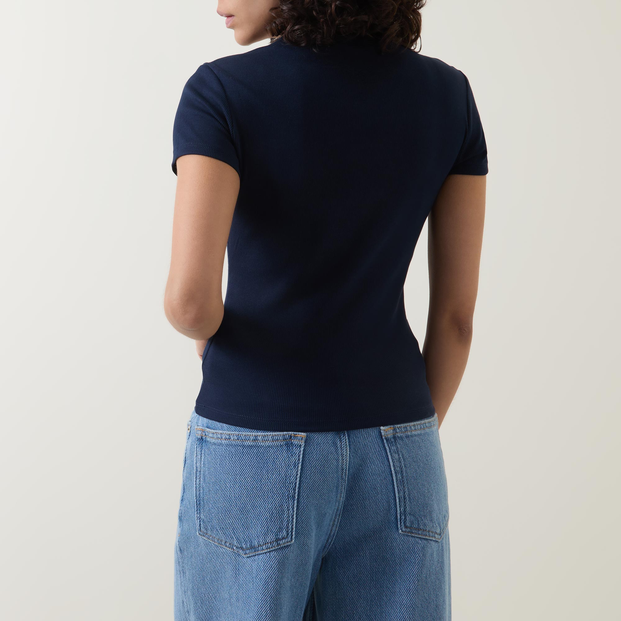 • Round neckline, short sleeves, signature logo flag embroidery, straight hemline, smooth fabric